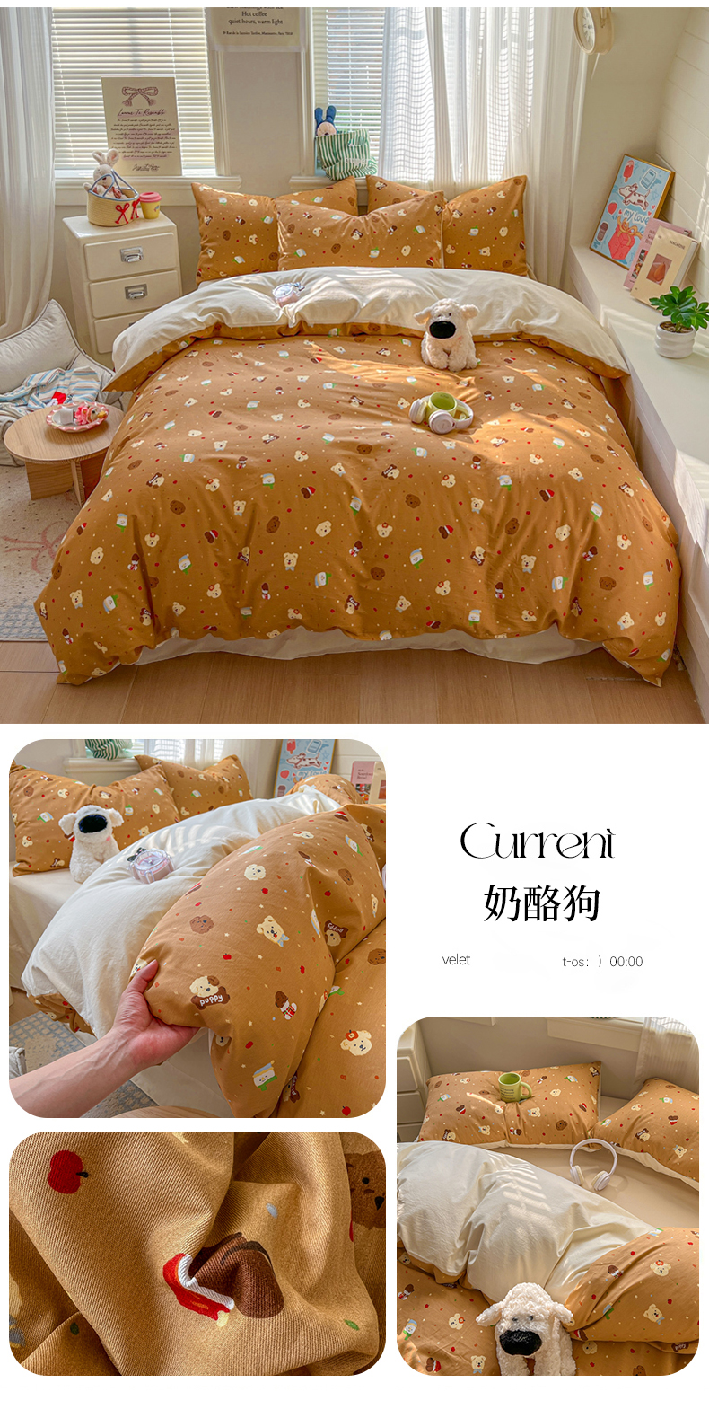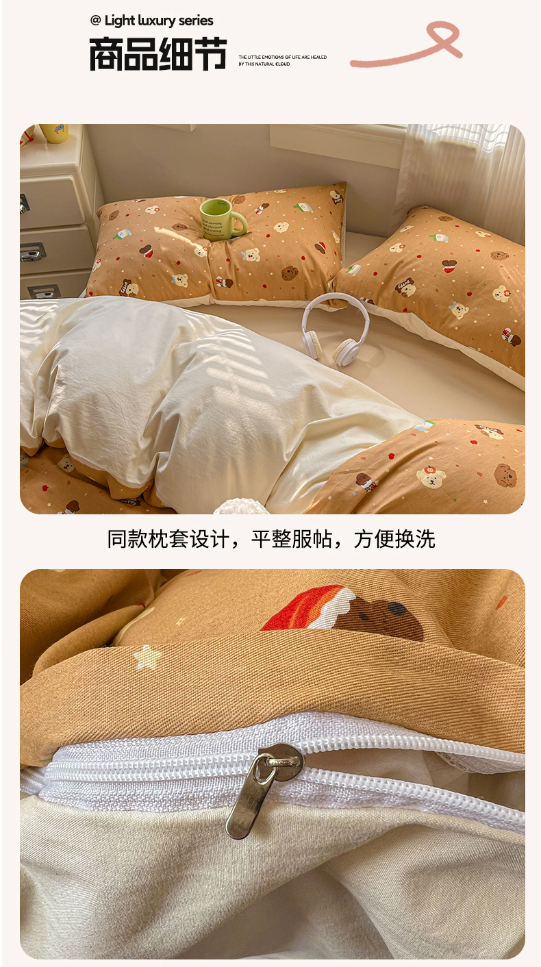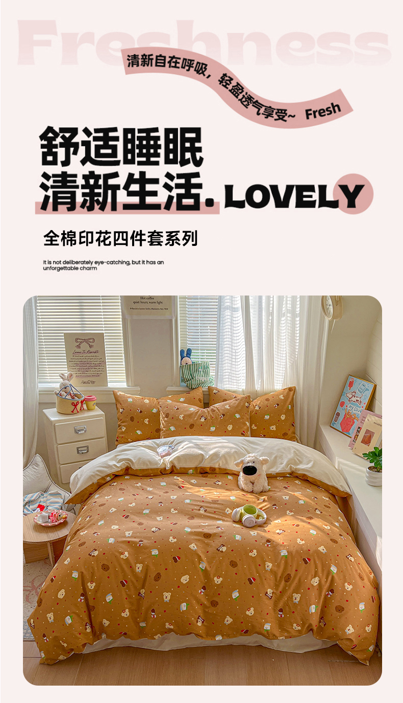 (总)漫仙阁家纺 2025新品云朵棉可爱风卡通烫画单床笠枕套三件套,小浣熊,邻家女孩,小青蛙,兔小姐,花仙子,狗狗家族