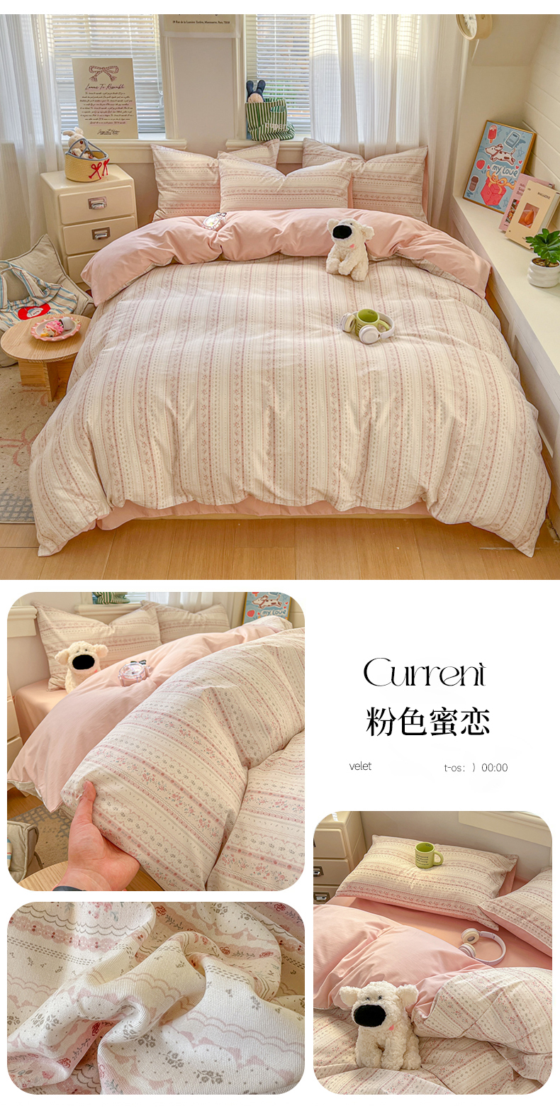 商品名称:(总)漫仙阁家纺 2026新款纯棉学生宿舍A版100%新疆棉B版古法水洗三件套全棉四件套