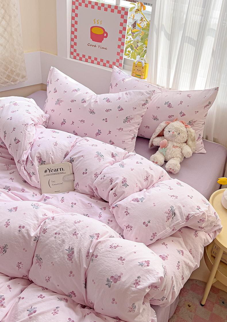 当前位置: 91家纺网 > 商品网购 > 床品套件 > 四件套 > 双层纱四件套 > 优选良品 2026新款加厚云感棉双层纱四件套小碎花被套床单床笠款学生三件套新款直播爆款 葡萄七分甜