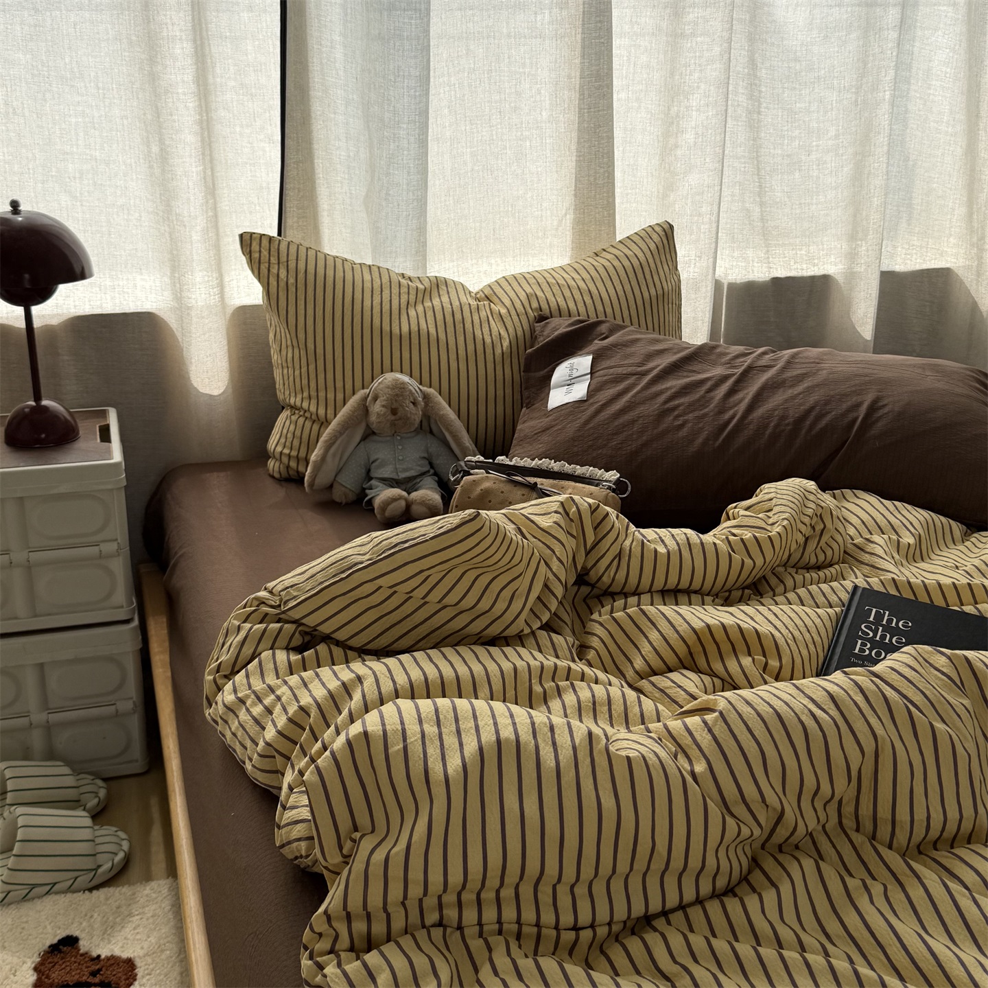拾一 2026新款软糯木棉中古多巴胺条纹系列四件套 慵懒条-黄