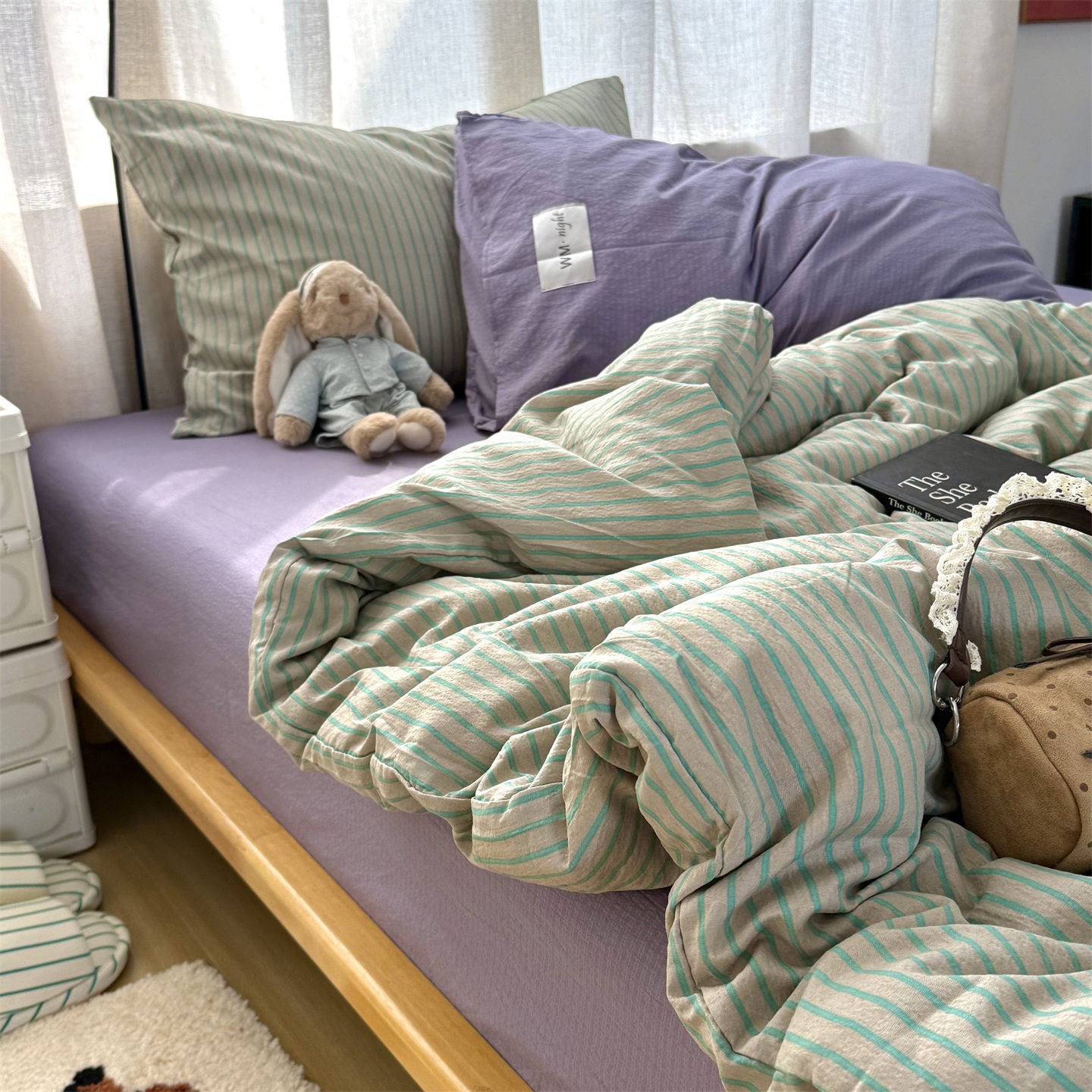 (总)拾一 2026新款软糯木棉中古多巴胺条纹系列四件套,慵懒条-黄,慵懒条-蓝,慵懒条-绿,慵懒条-浅咖,慵懒条-紫