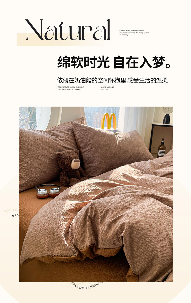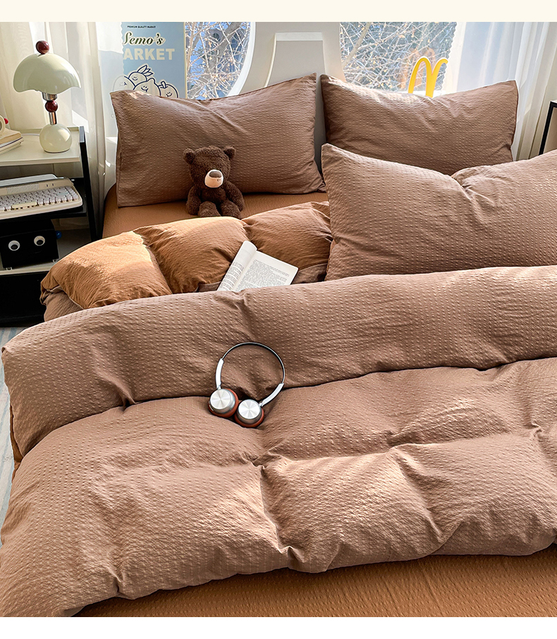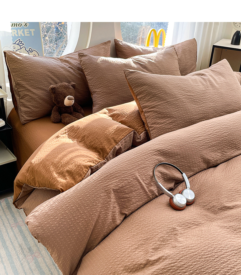 当前位置: 91家纺网 > 商品网购 > 床品套件 > 四件套 > 双层纱四件套 > 优承佳生活馆 2026新款软糯双拼泡芙纱四件套 咖啡+深卡其