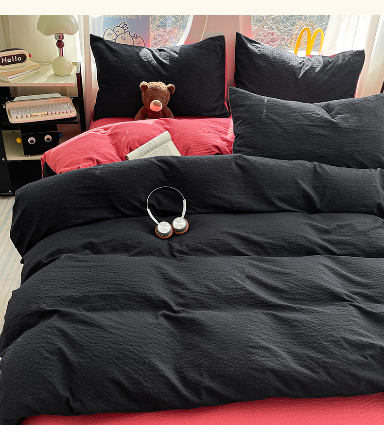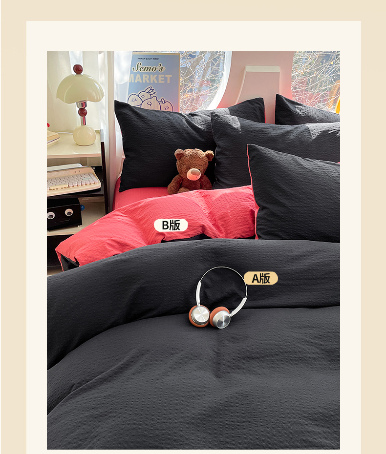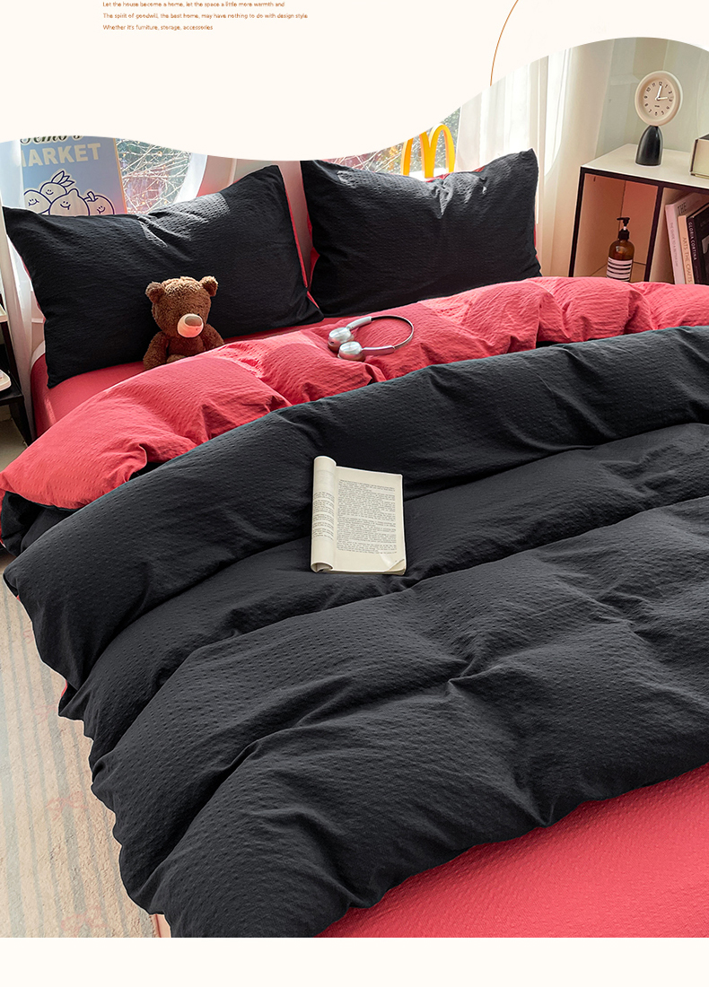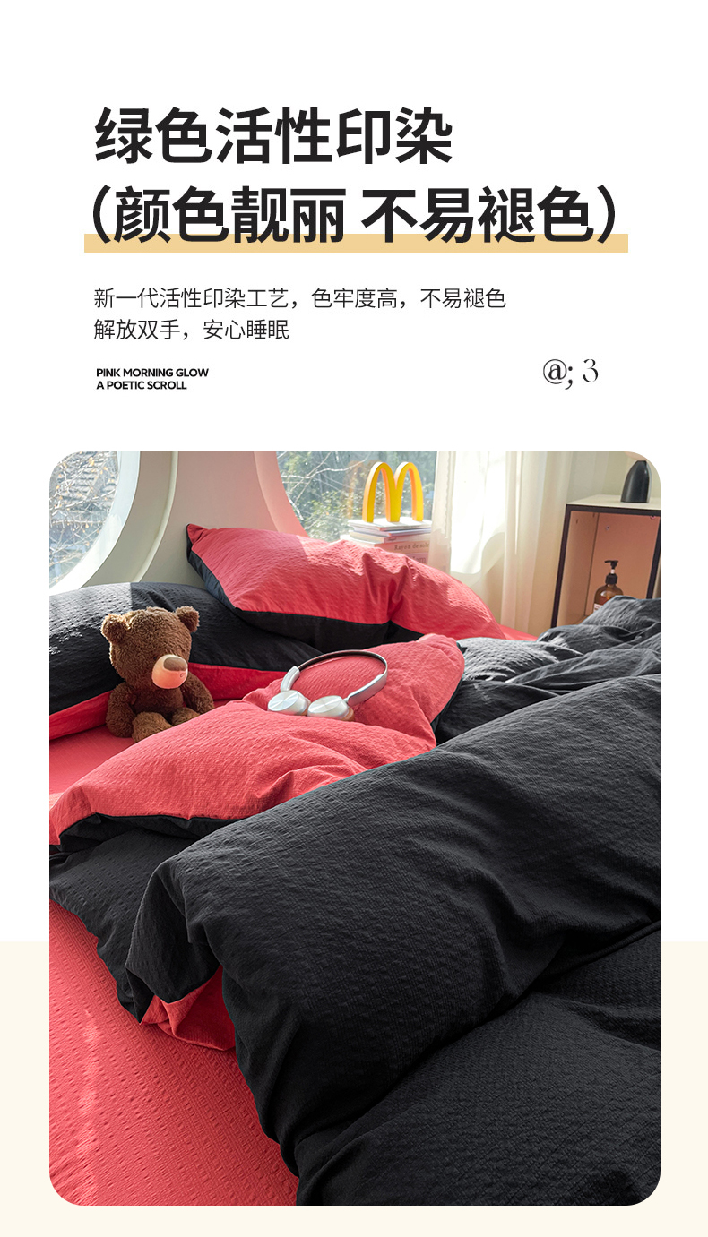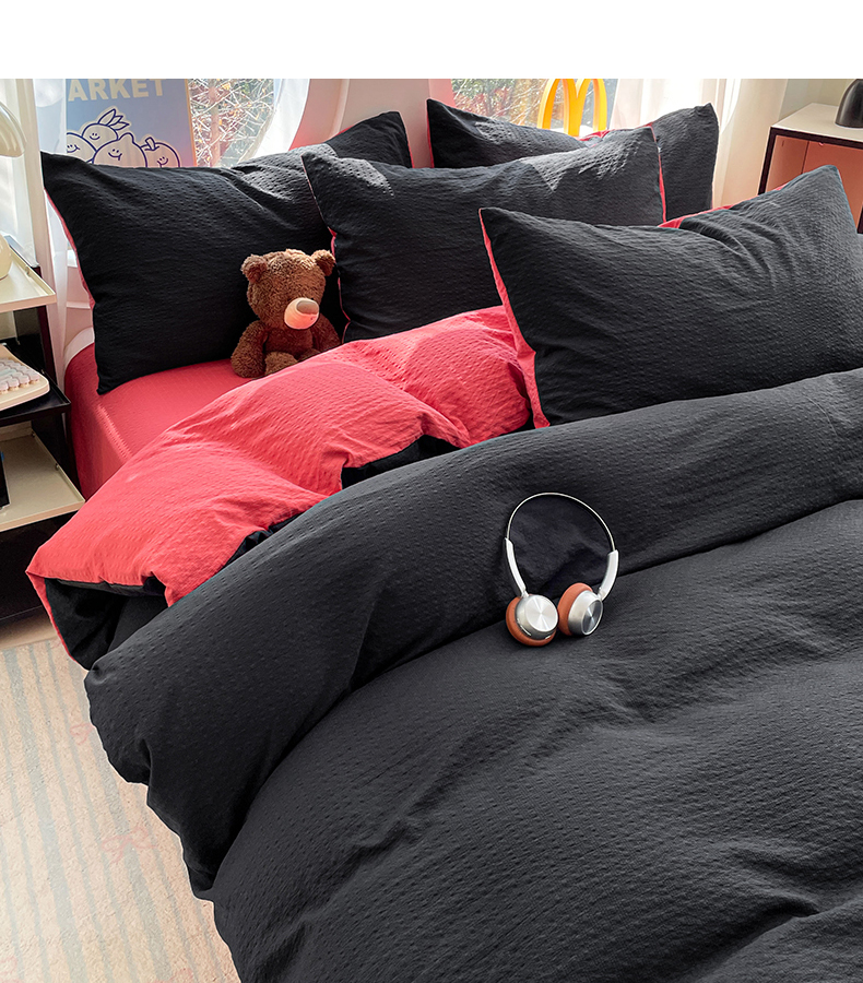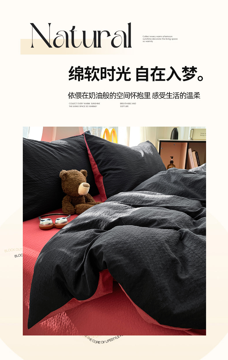 当前位置: 91家纺网 > 商品网购 > 床品套件 > 四件套 > 双层纱四件套 > 优承佳生活馆 2026新款软糯双拼泡芙纱四件套 星耀黑+西瓜红