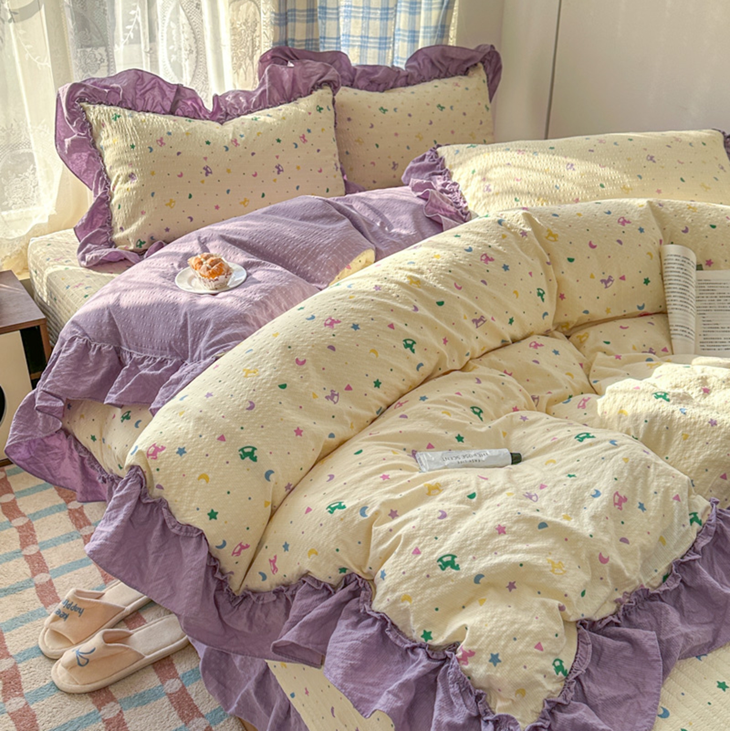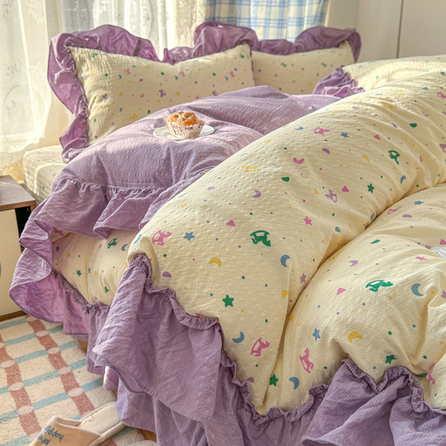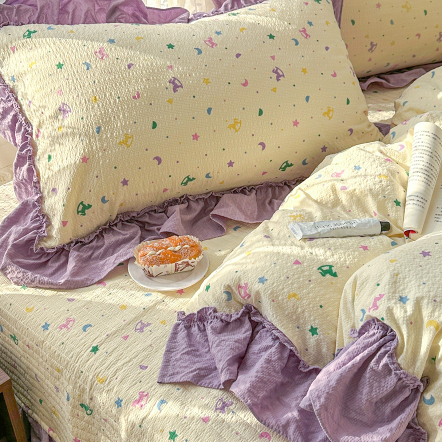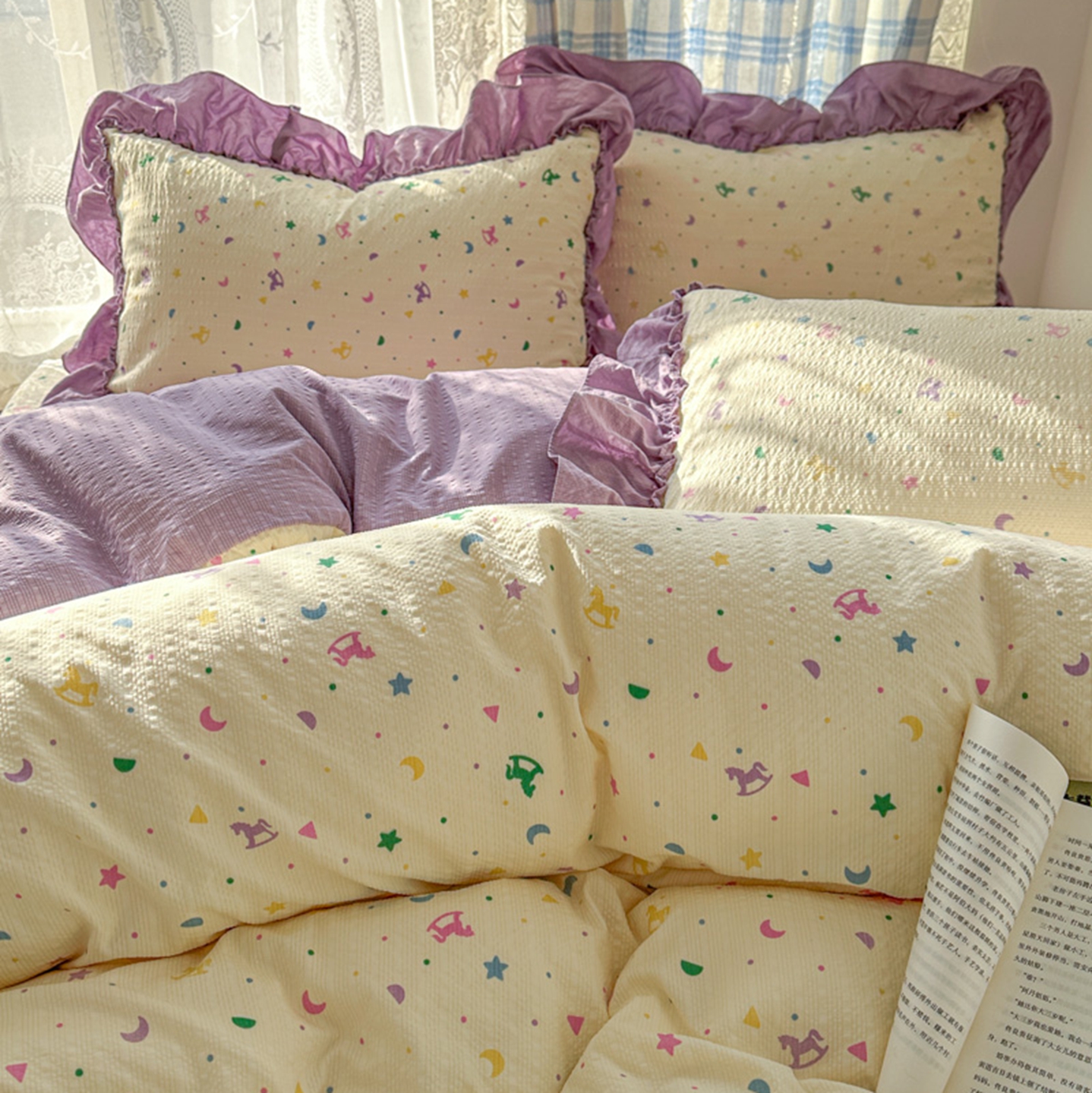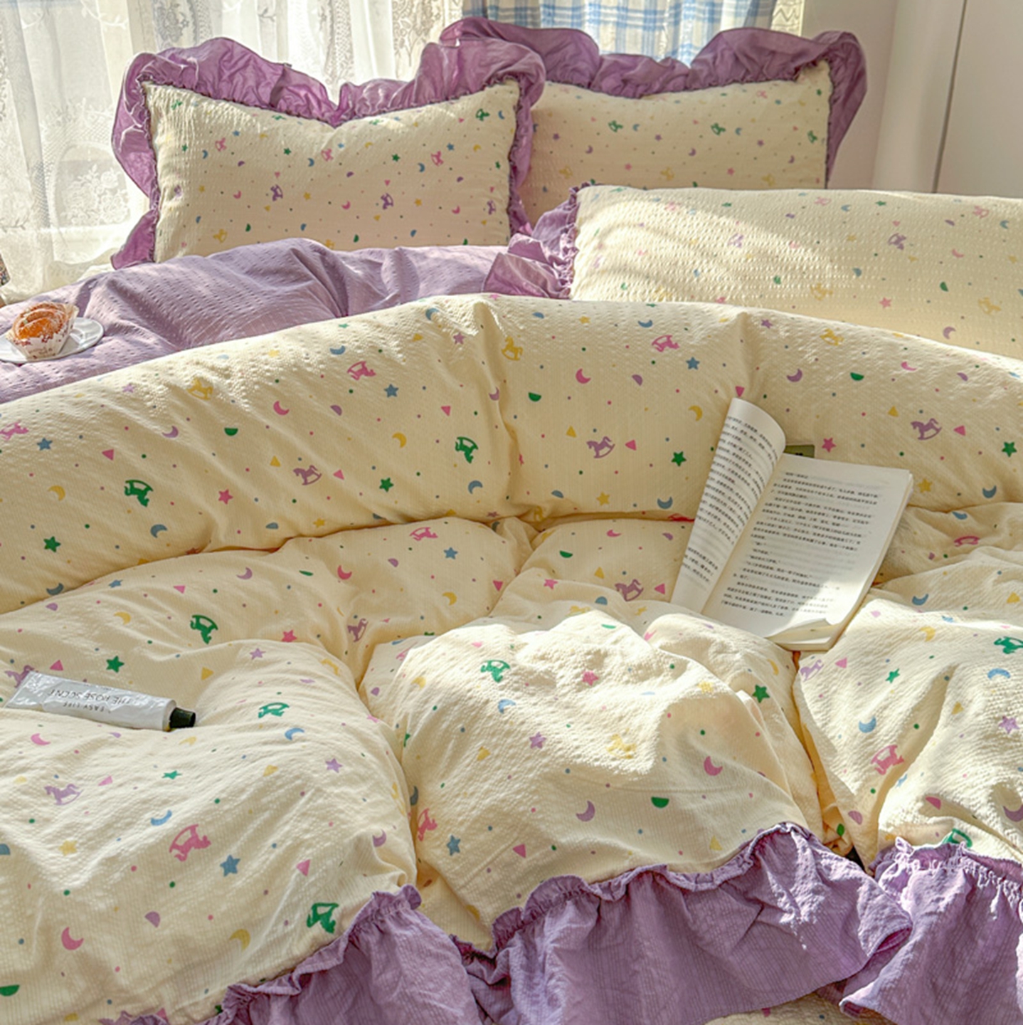 (总)欧尚 2026新款花边床盖四件套,春和,花束,花野,灰樱桃,咖爱心,咖豹纹,咖啡小猫,梨花落,绿爱心,梦境,木马,奶油波点,暖橘枝,暖心,人间草木,田园兔,小女孩,星愿,摇摇马,紫爱心,紫豹纹,紫苏