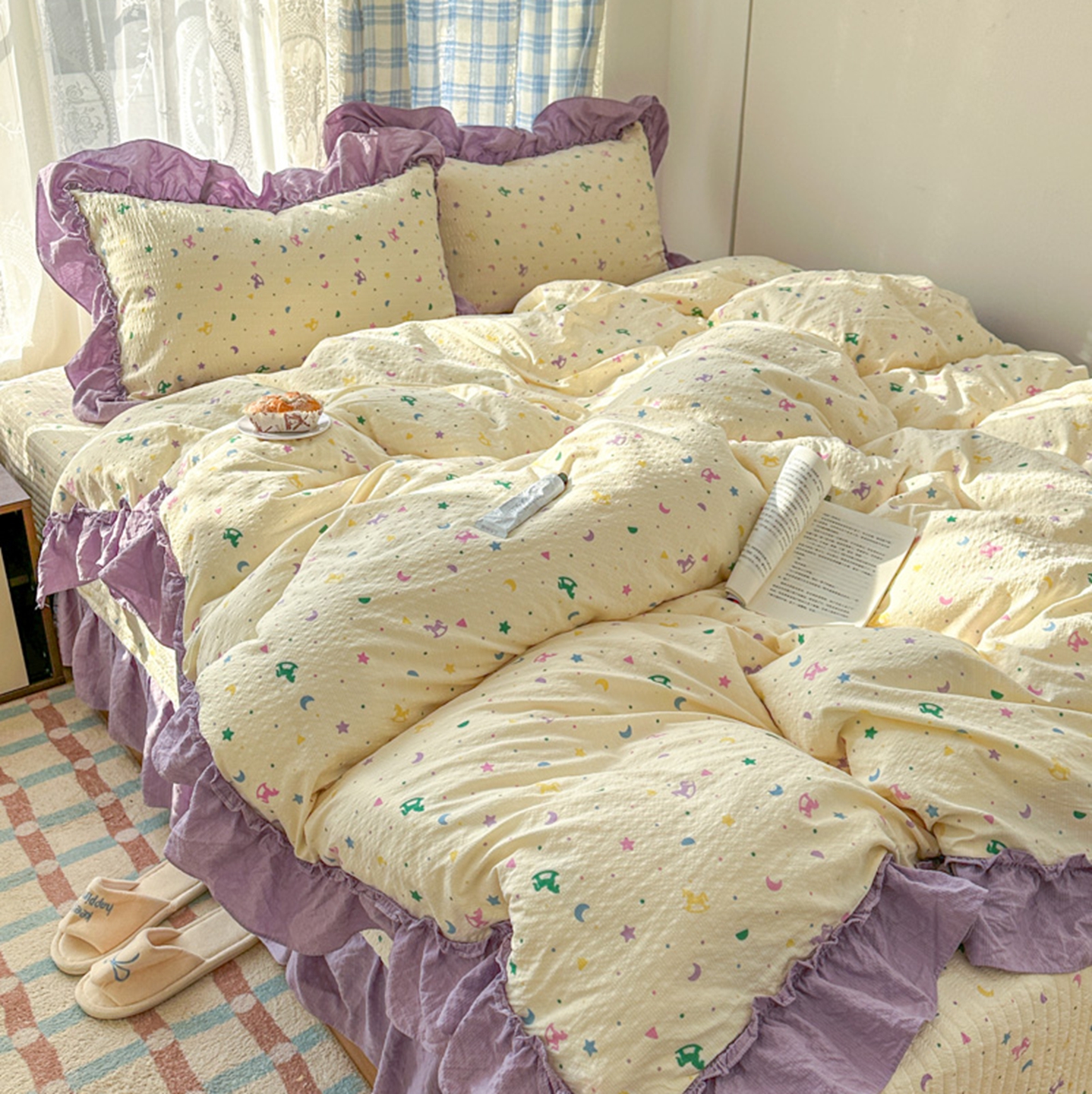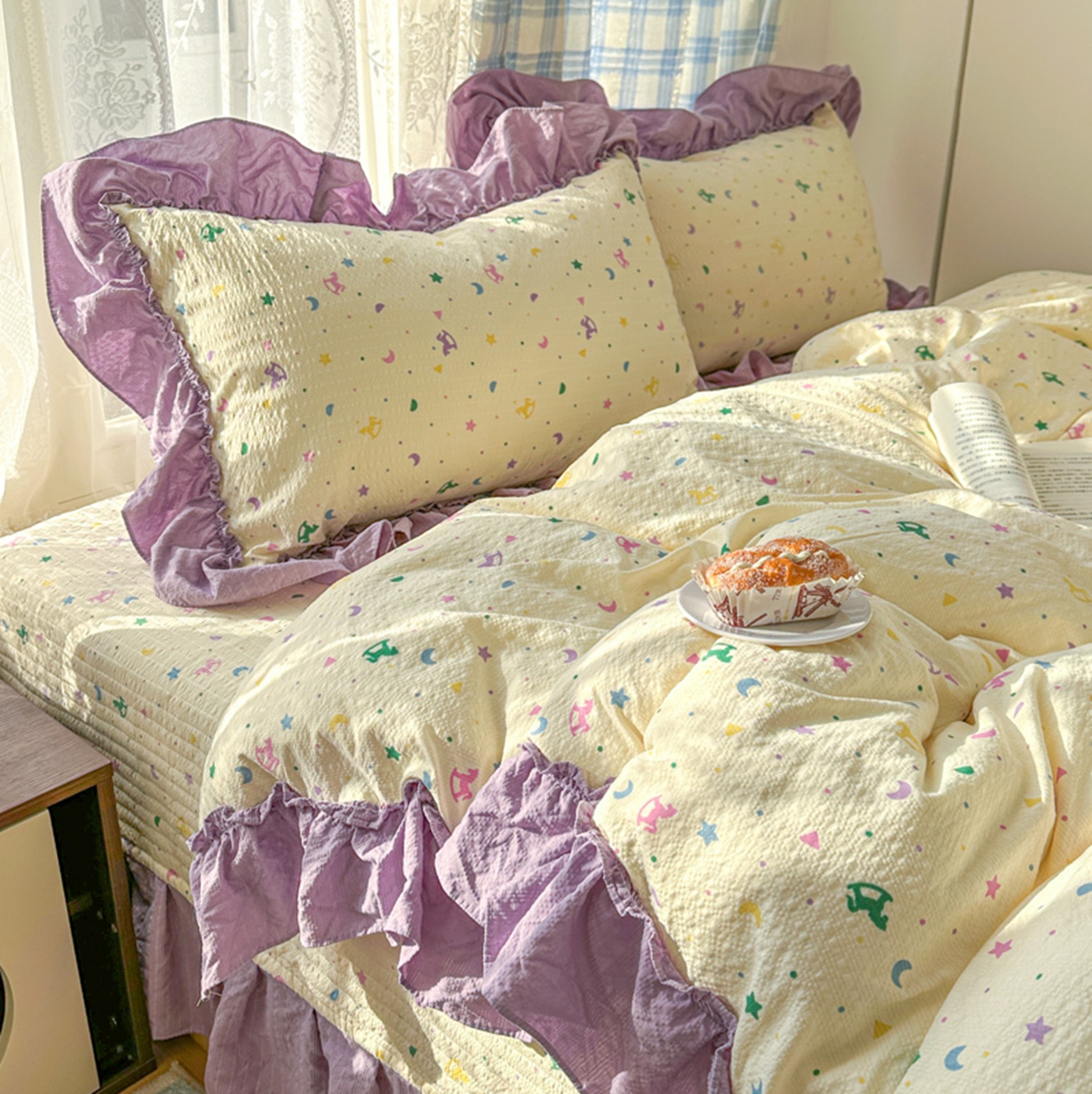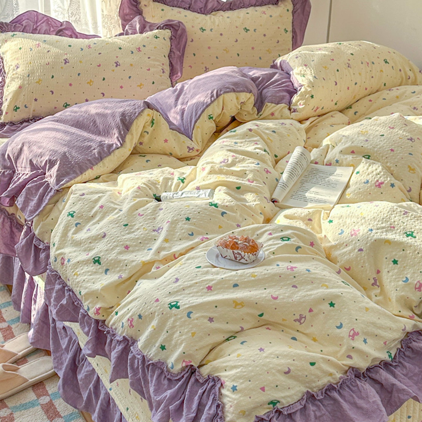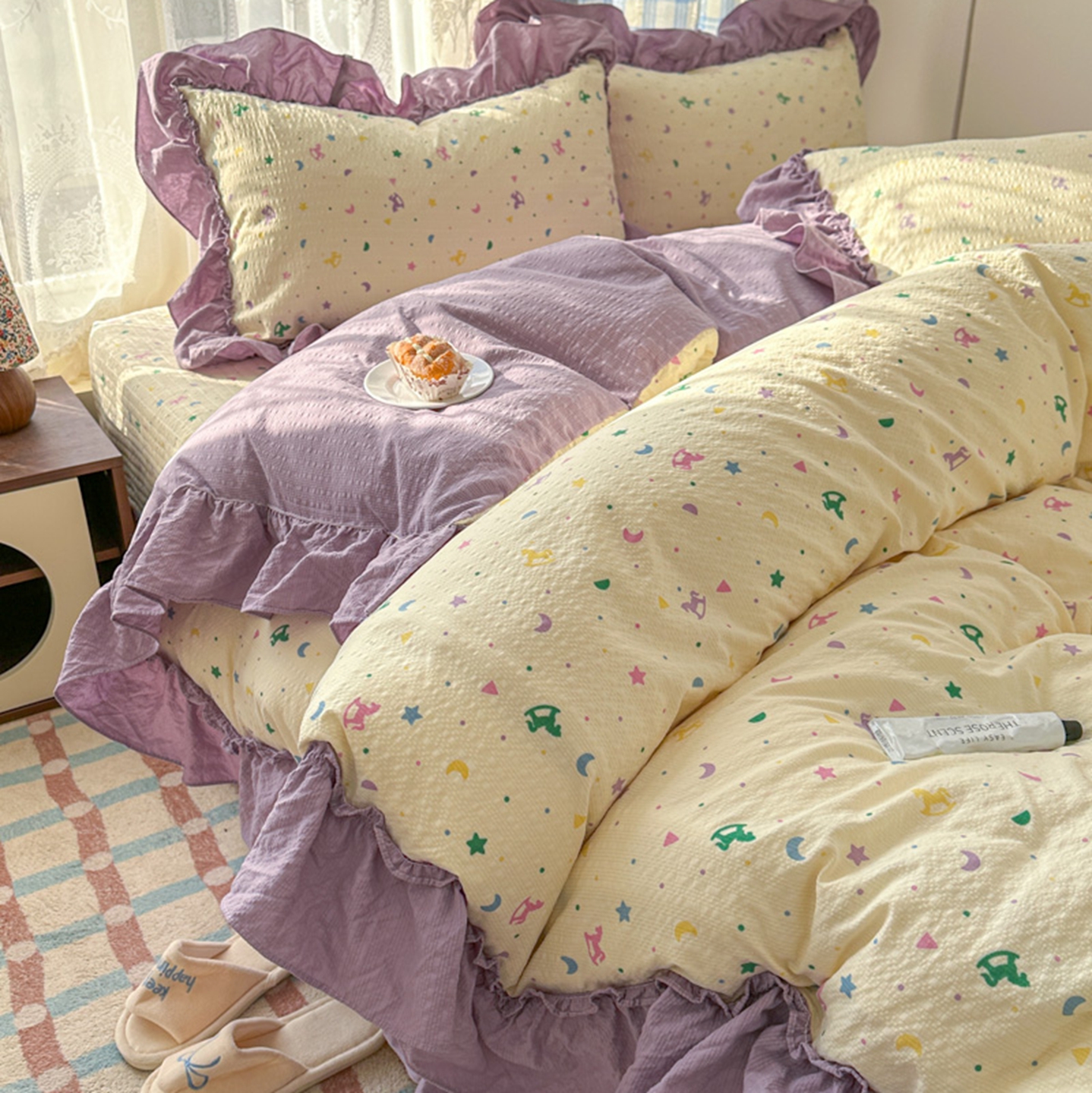 (总)欧尚 2026新款花边床盖四件套,春和,花束,花野,灰樱桃,咖爱心,咖豹纹,咖啡小猫,梨花落,绿爱心,梦境,木马,奶油波点,暖橘枝,暖心,人间草木,田园兔,小女孩,星愿,摇摇马,紫爱心,紫豹纹,紫苏