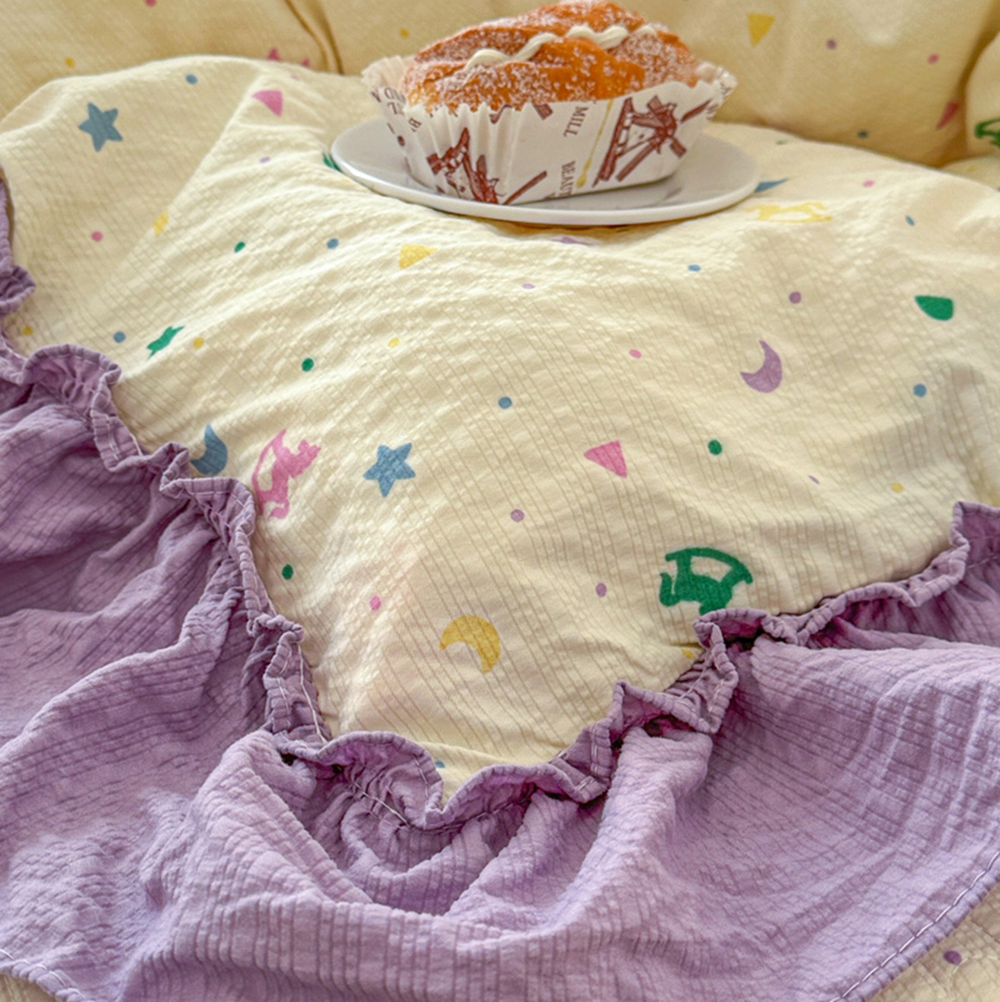 (总)欧尚 2025新款牛奶绒花边床盖四件套,粉点点,花小玉,咖色小心心,蓝点点,慕然,仙女粉,仙女紫