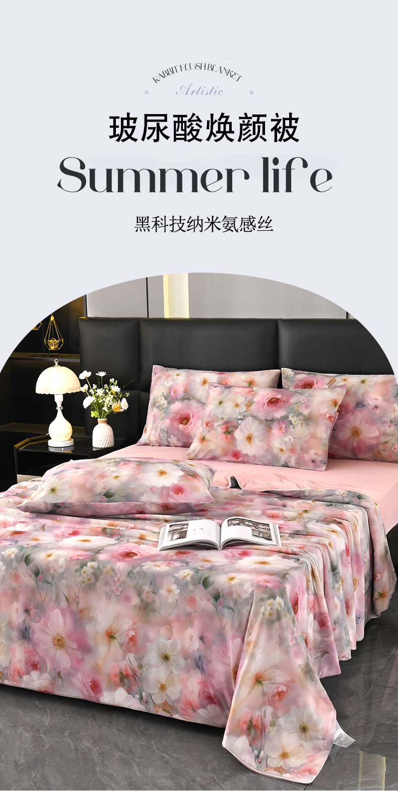 欧夏家纺 2026新款凉感锦氨夏被玻尿酸焕颜被夏凉被空调被薄被子-直播供货 花海丛丛
