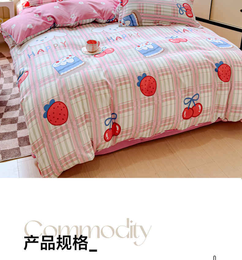 佑佳家纺 2024新款磨毛印花植物羊绒单被套 草莓兔,草莓兔