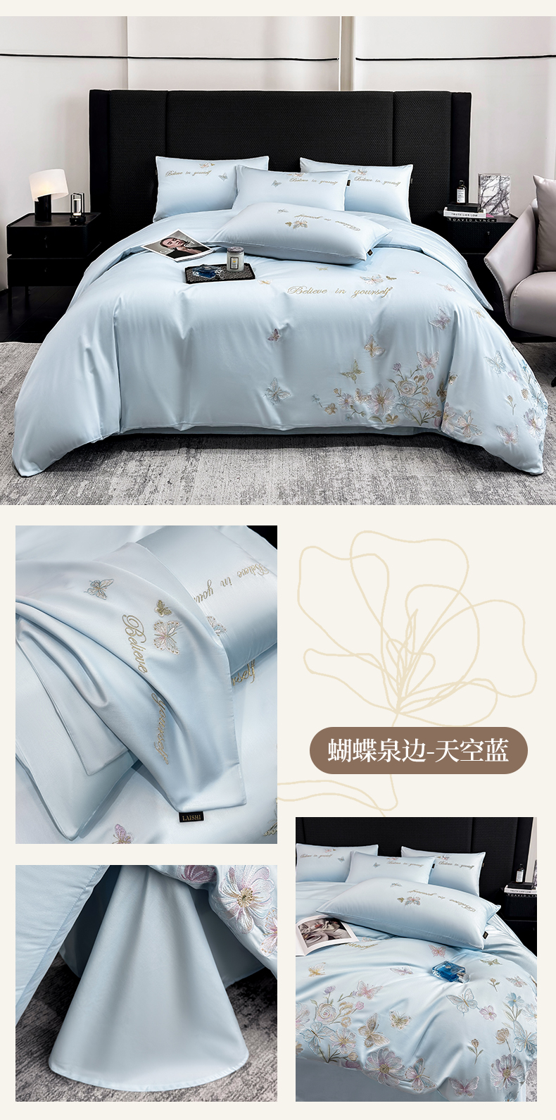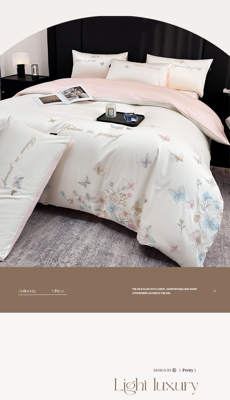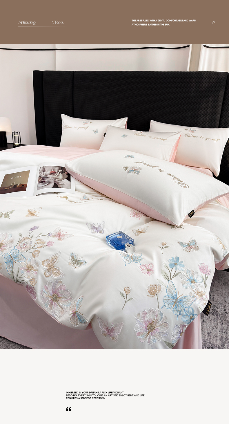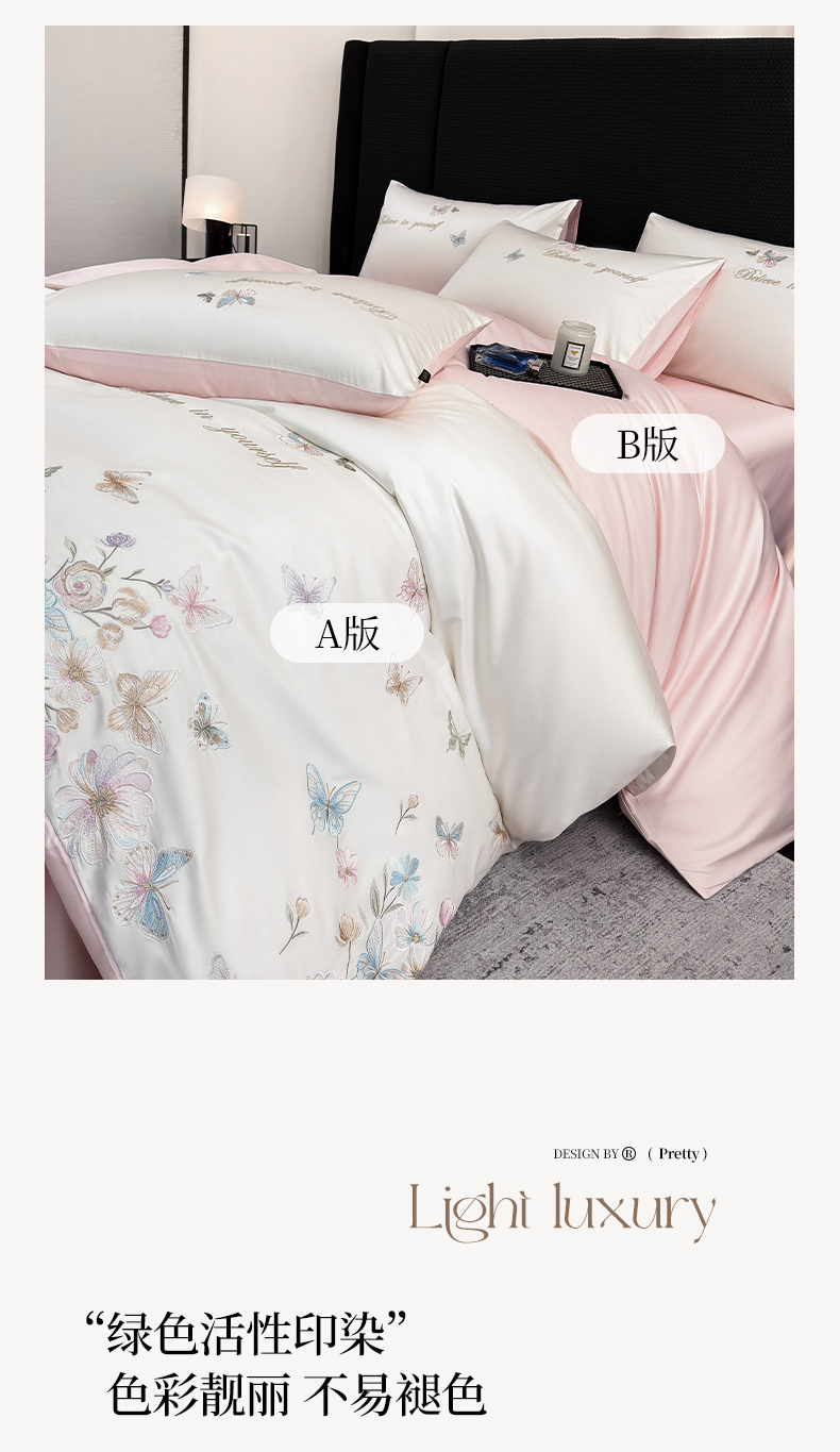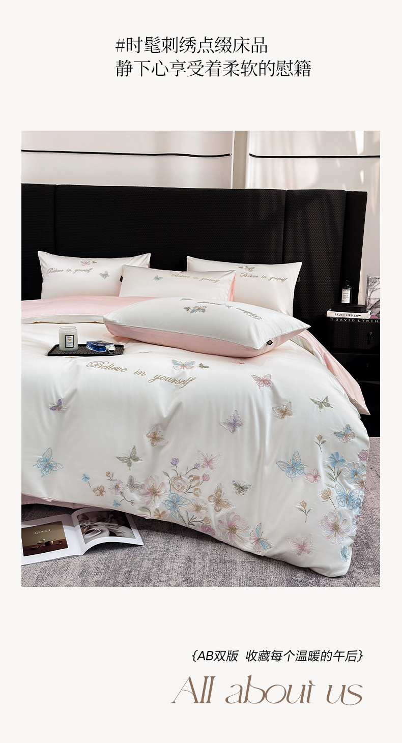 (总)莱势 2026新品100支纯棉全棉50x50s贡缎长绒棉刺绣绣花四件套高端礼盒-蝴蝶泉边,蝴蝶泉边-白拼粉,蝴蝶泉边-轻奢粉,蝴蝶泉边-清新绿,蝴蝶泉边-天空蓝