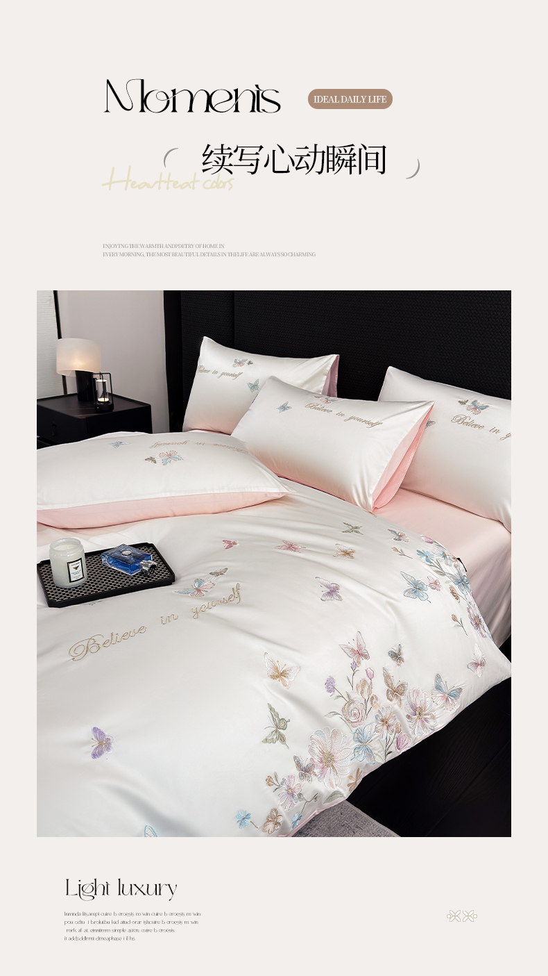 莱势 2026新品100支纯棉全棉50x50s贡缎长绒棉刺绣绣花四件套高端礼盒-蝴蝶泉边 蝴蝶泉边-轻奢粉,蝴蝶泉边-轻奢粉