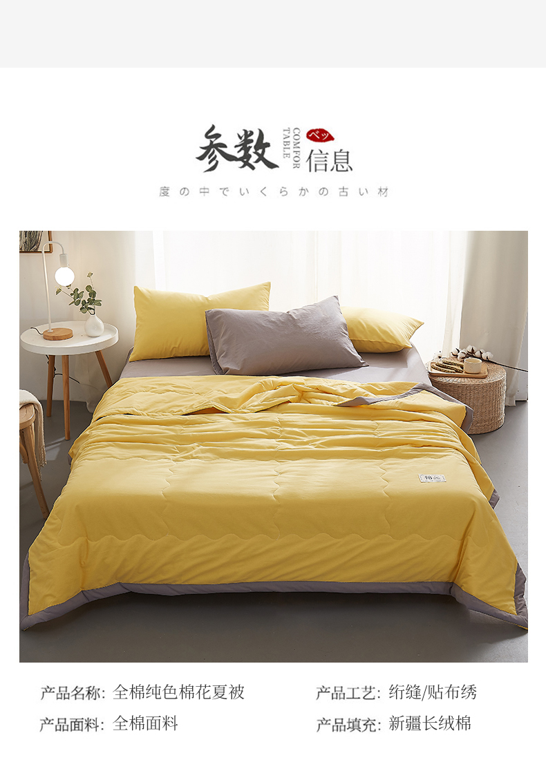 商品名称:暖阳 2026新款全棉纯色+拼色棉花夏被夏凉被空调被 柠檬黄