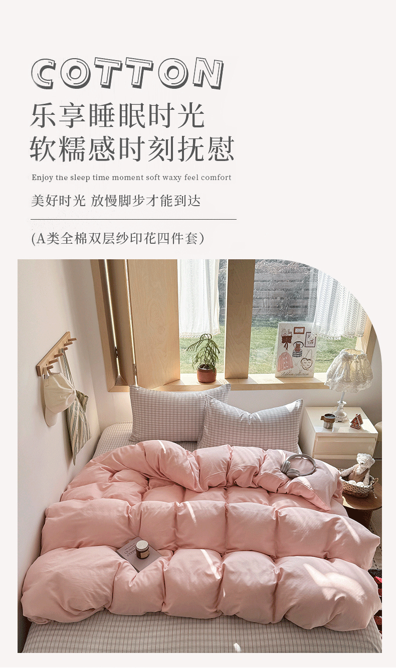 当前位置: 91家纺网 > 商品网购 > 床品套件 > 四件套 > 全棉普通四件套 > 爱思佳 2026新款全棉双层纱混搭格子系列四件套 粉-追光