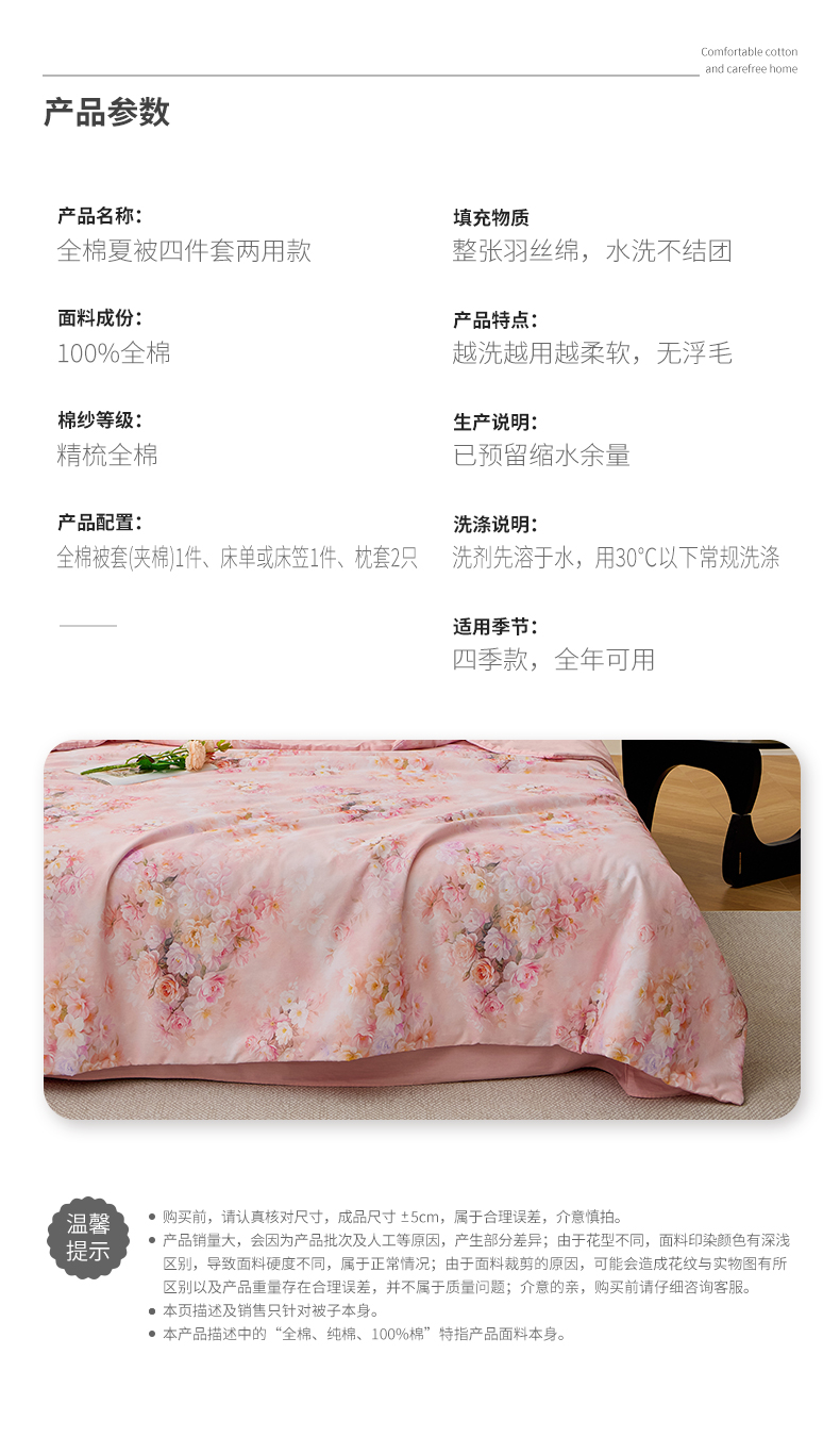 • 91家纺网 家纺一手货源 找家纺 元元家居(元元被业) 2026新款全棉纯棉13372印花两用夏被夏凉被空调被四件套 闪亮