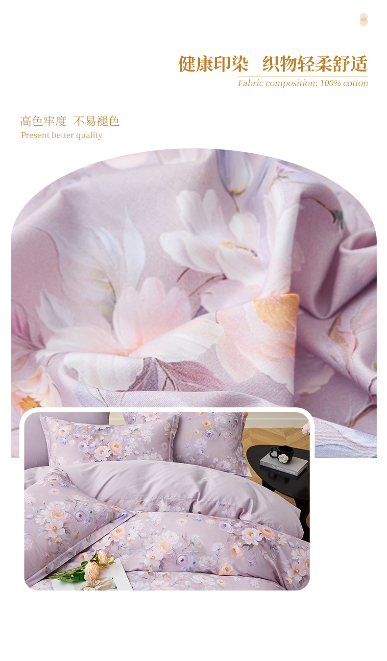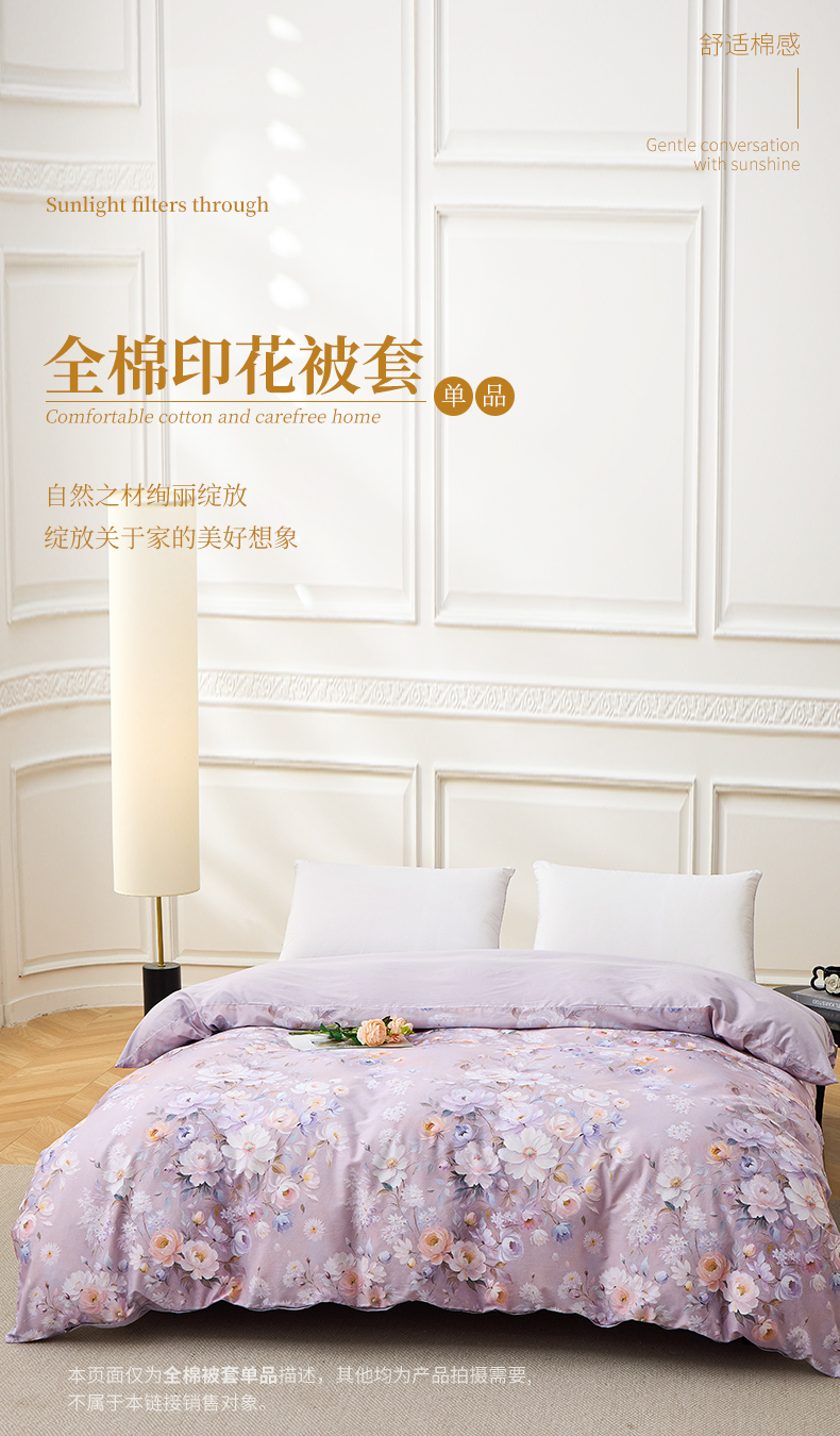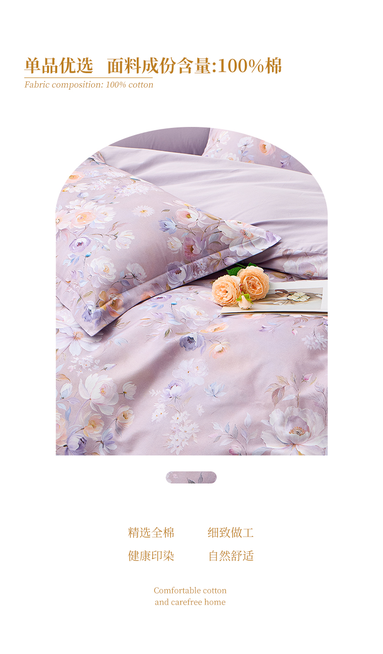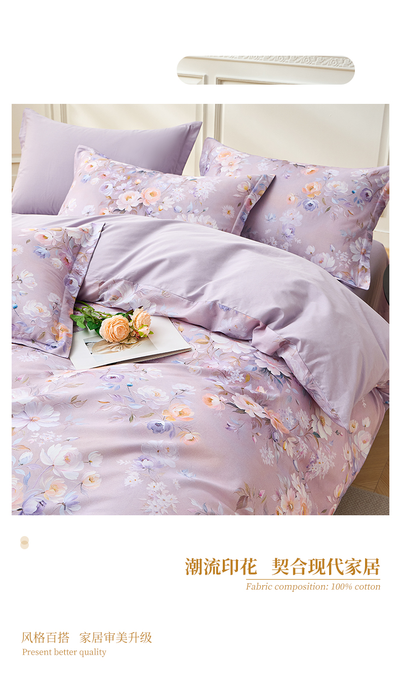 商品名称:元元家居(元元被业) 2026新款全棉13372套件及单品【印花款】-单被套 花漾紫