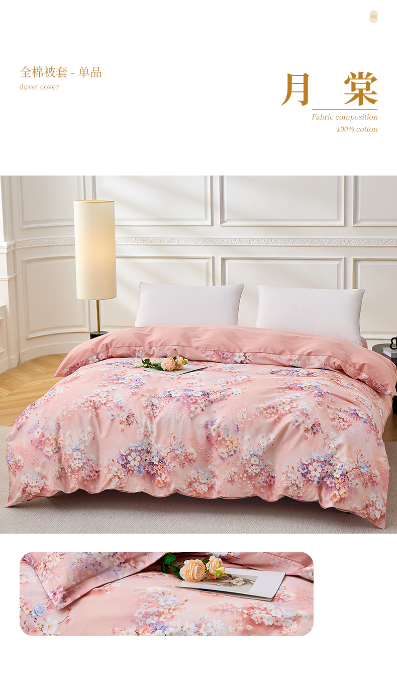 元元家居(元元被业) 2026新款全棉13372套件及单品【印花款】-单被套 花漾紫