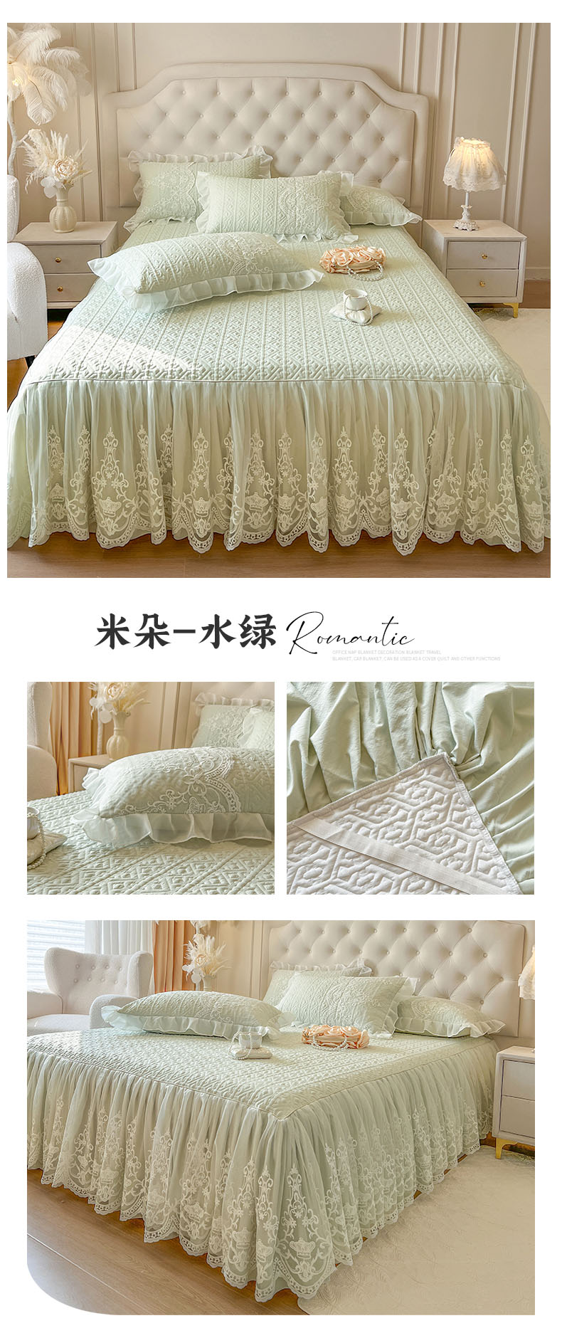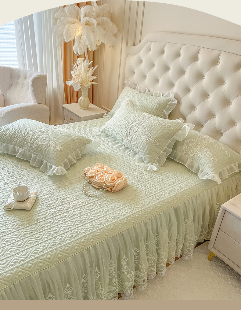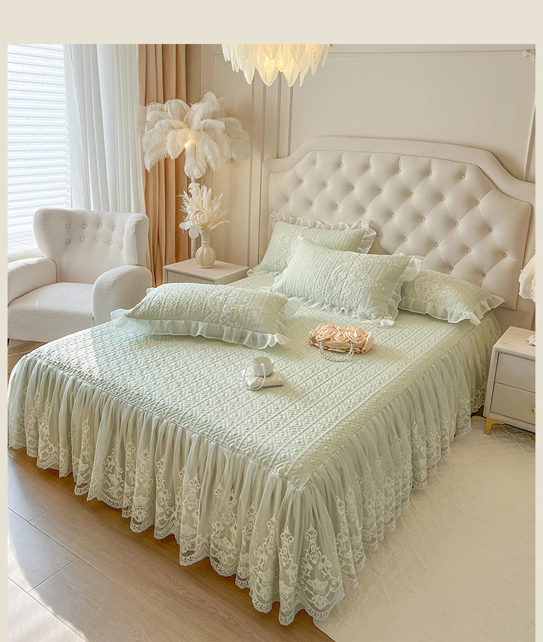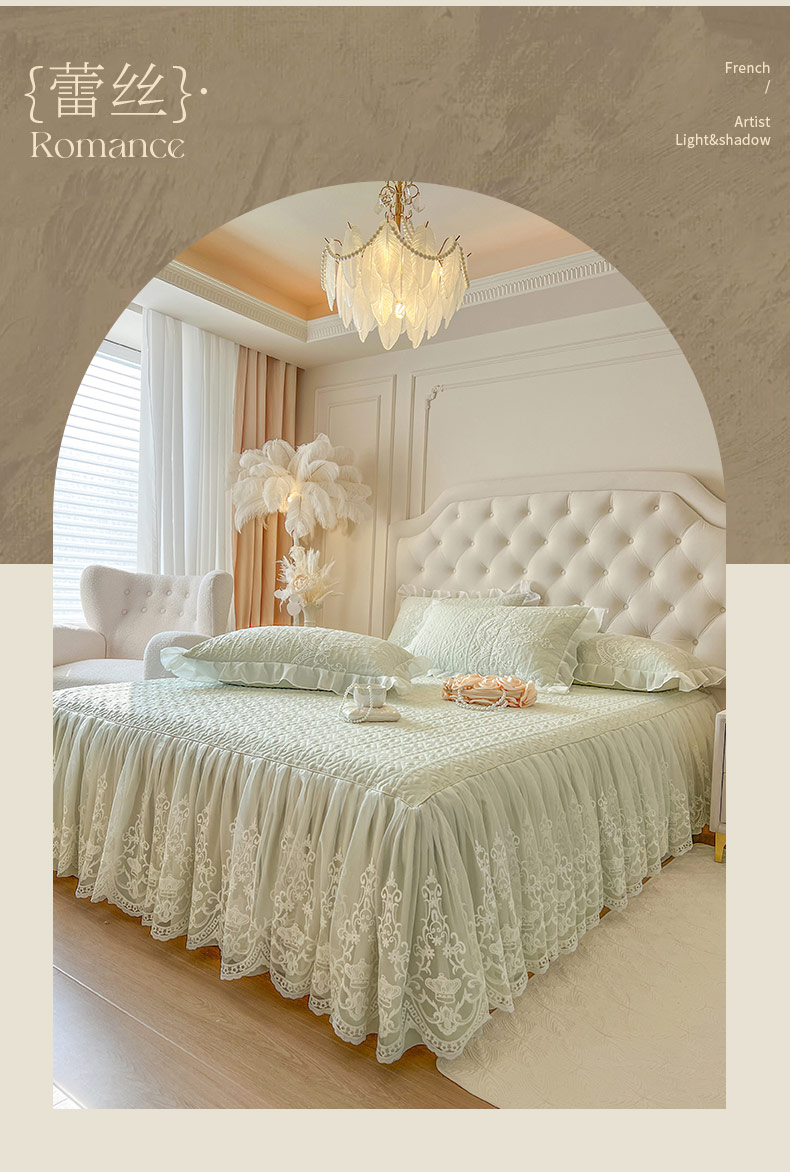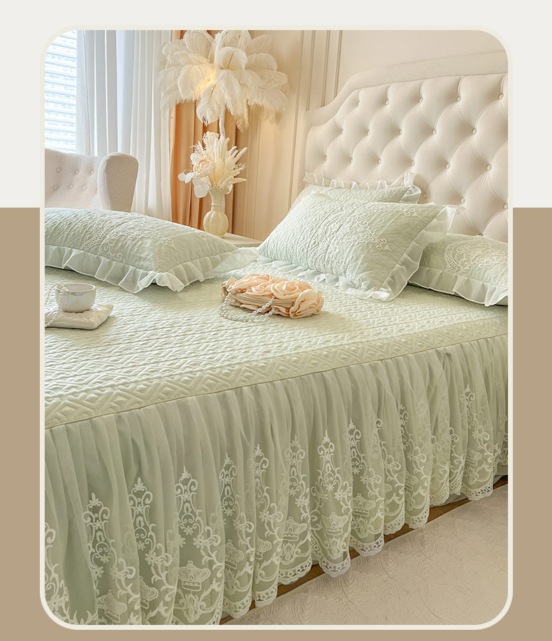 恋尚 2026新款木凉淳浪漫蕾丝床裙三件套-米朵(控价115起) 米朵-水绿