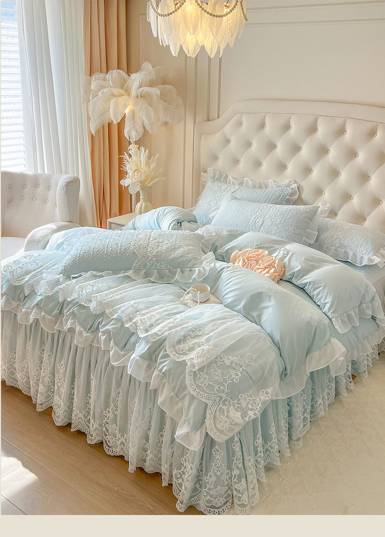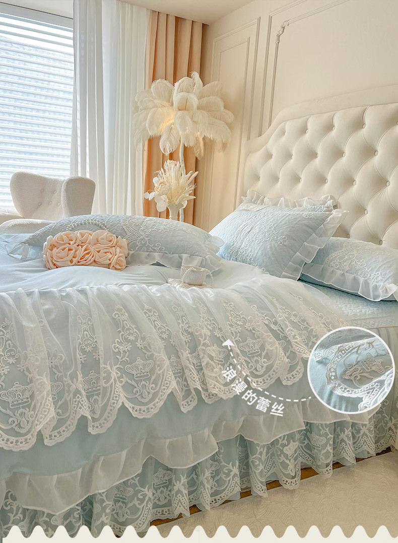 当前位置: 91家纺网 > 商品网购 > 床品套件 > 四件套 > 其它四件套 > 恋尚 2026新款木凉淳浪漫蕾丝床裙四件套-米朵(控价220起) 米朵-浅蓝