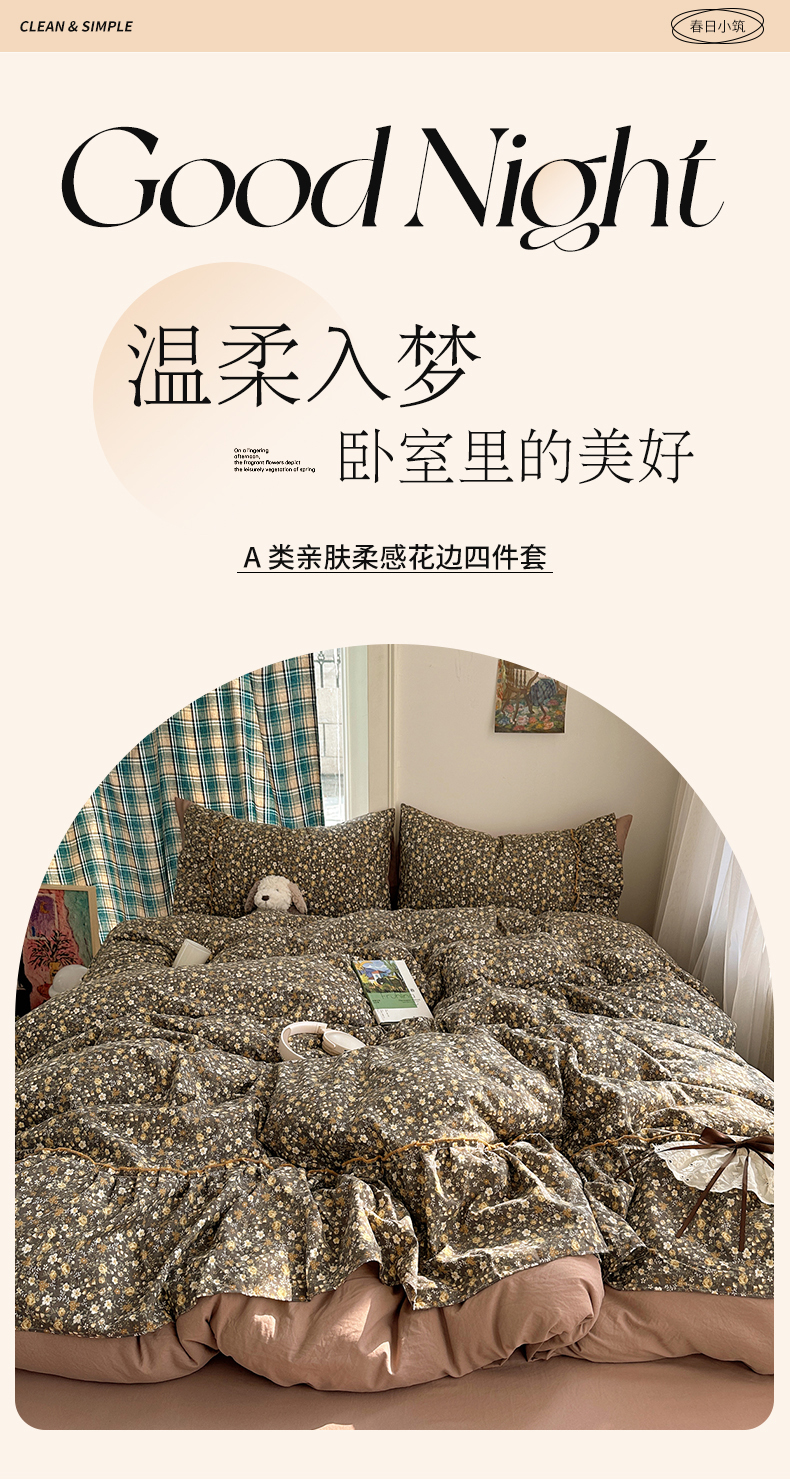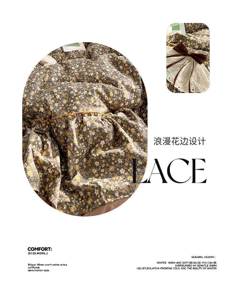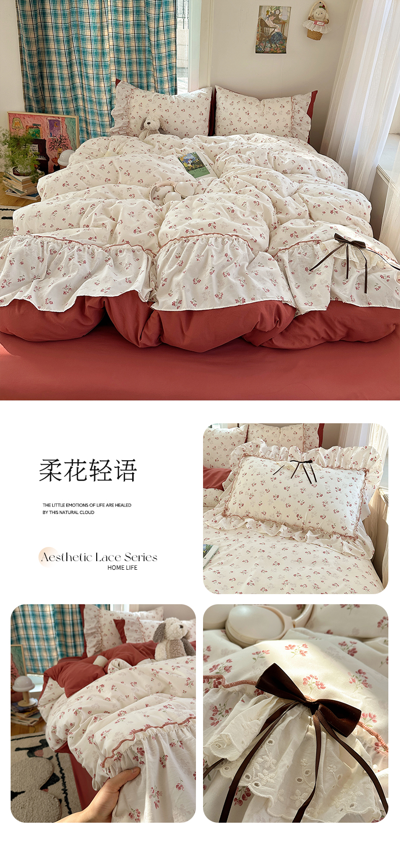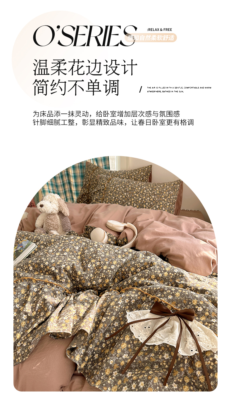 当前位置: 91家纺网 > 商品网购 > 床品套件 > 四件套 > 其它四件套 > 凯洛奇 2026新款A类仿棉云朵棉蝴蝶结花边四件套(提供买家秀) 蜜茶花事