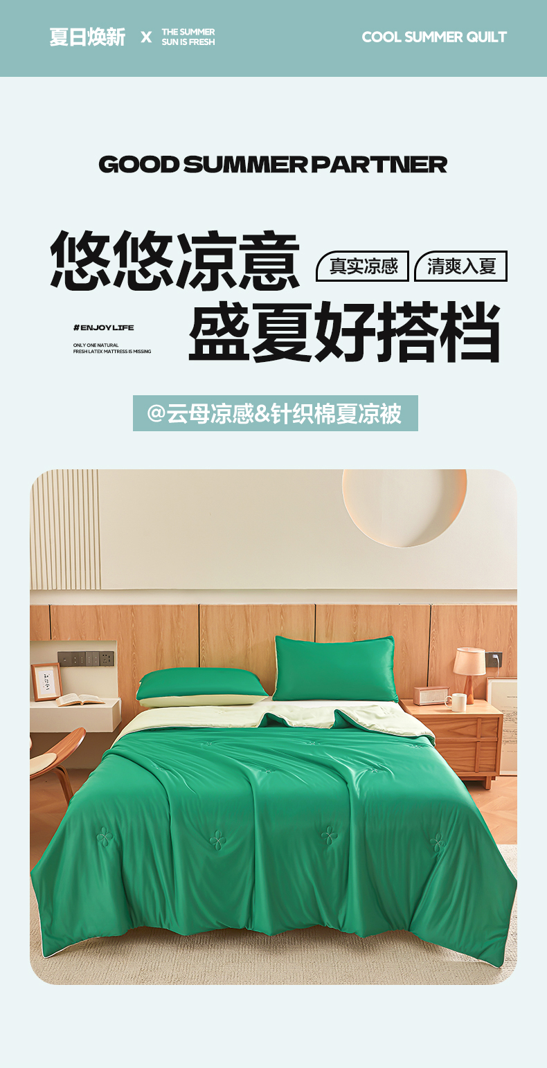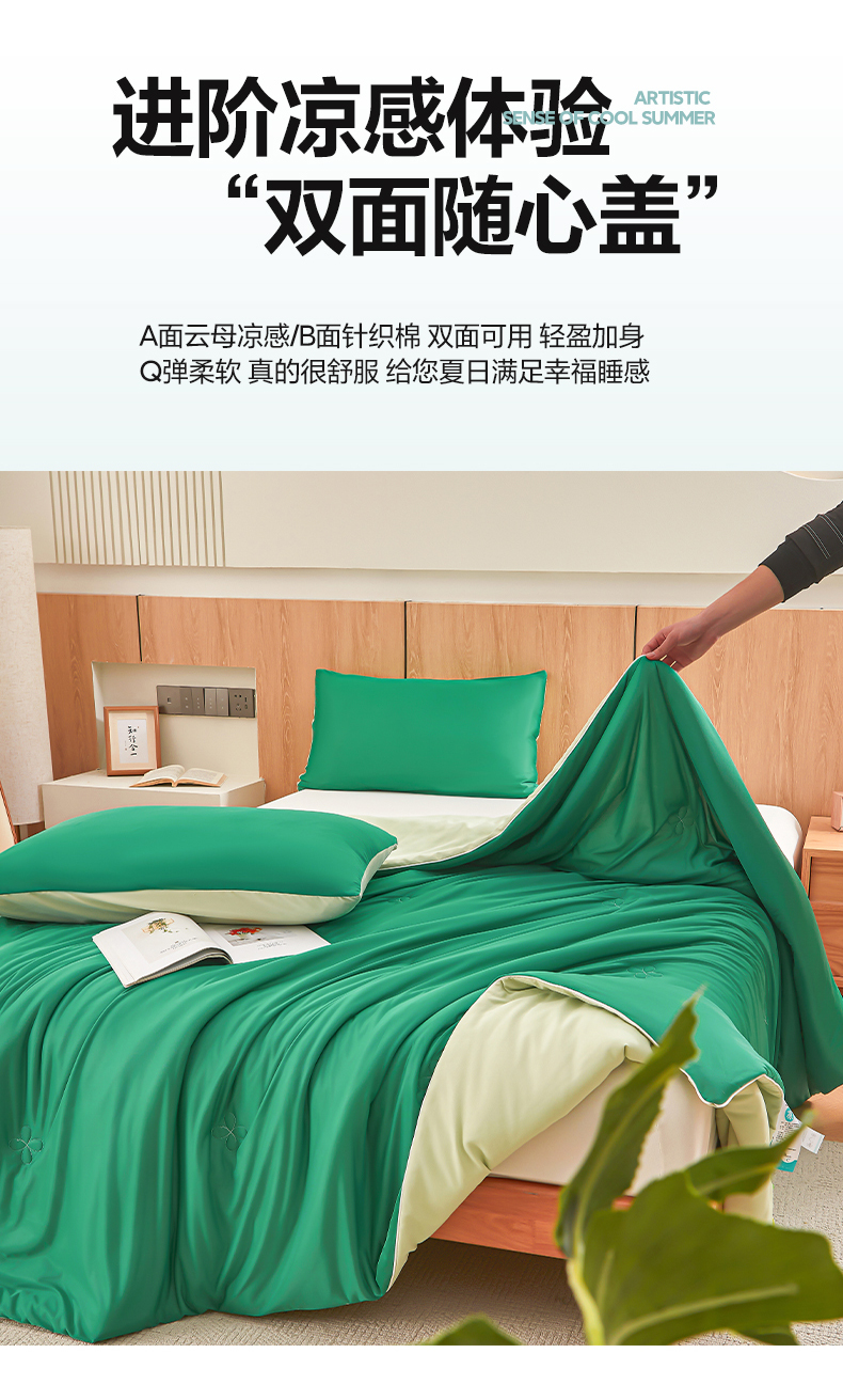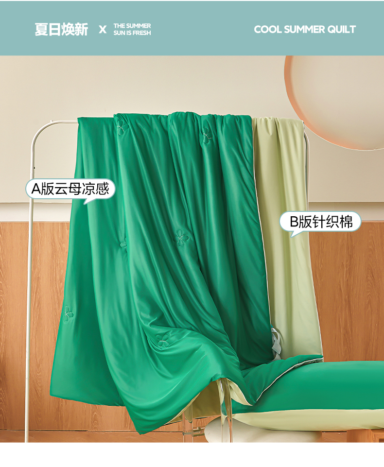商品名称:悦织语 2026新款A类云母凉感丝(含氨纶)+针织棉双面可用夏凉被空调被被子被芯 西瓜绿+浅绿