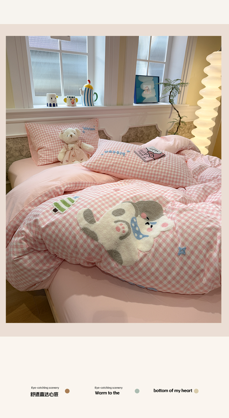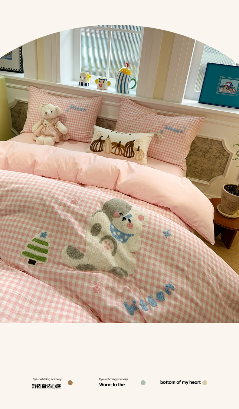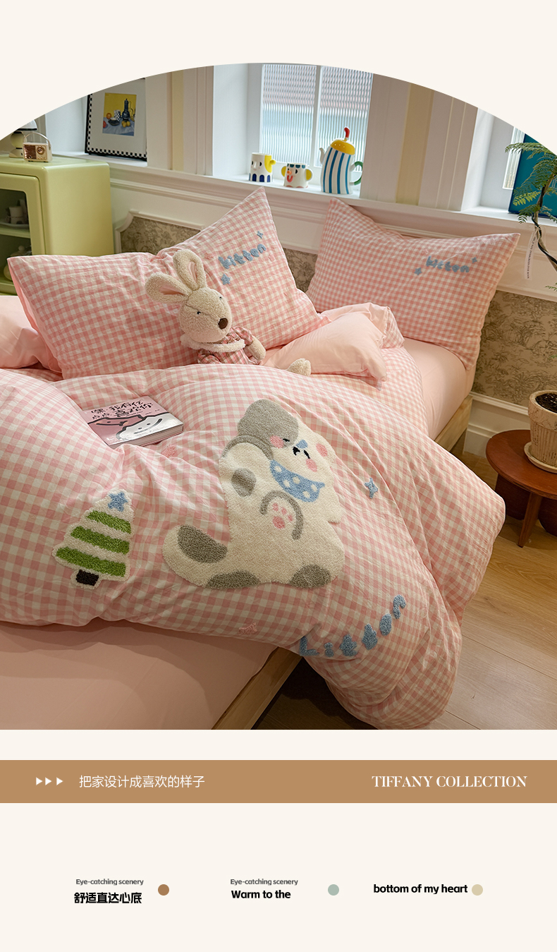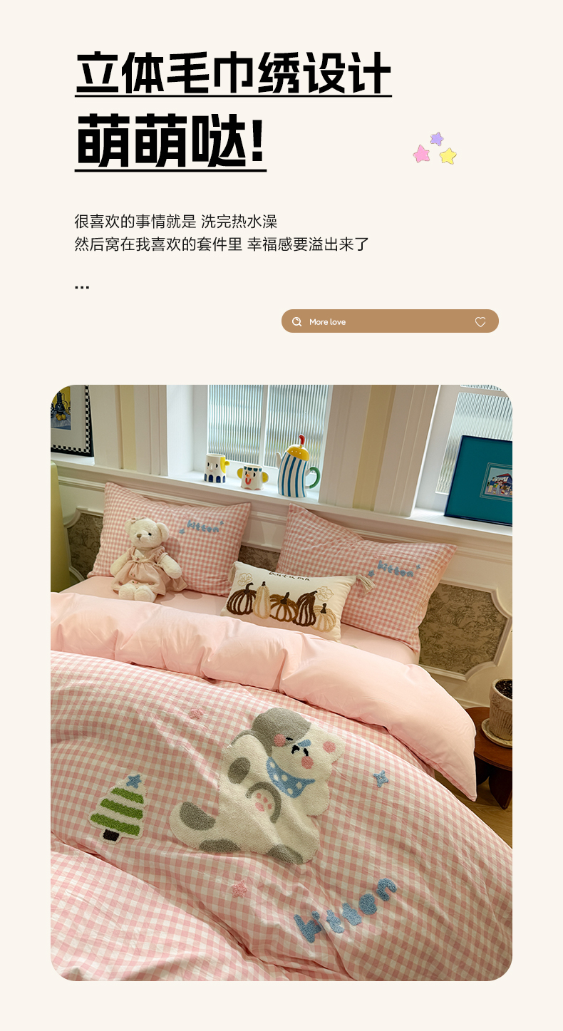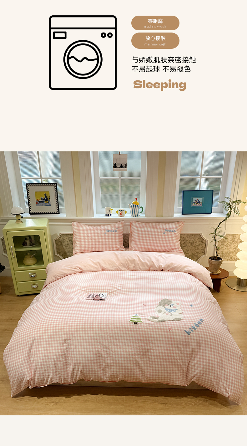 当前位置: 91家纺网 > 商品网购 > 床品套件 > 四件套 > 毛巾绣四件套 > 我心家纺 2026新款水洗棉毛巾绣四件套 美梦小猫-粉格