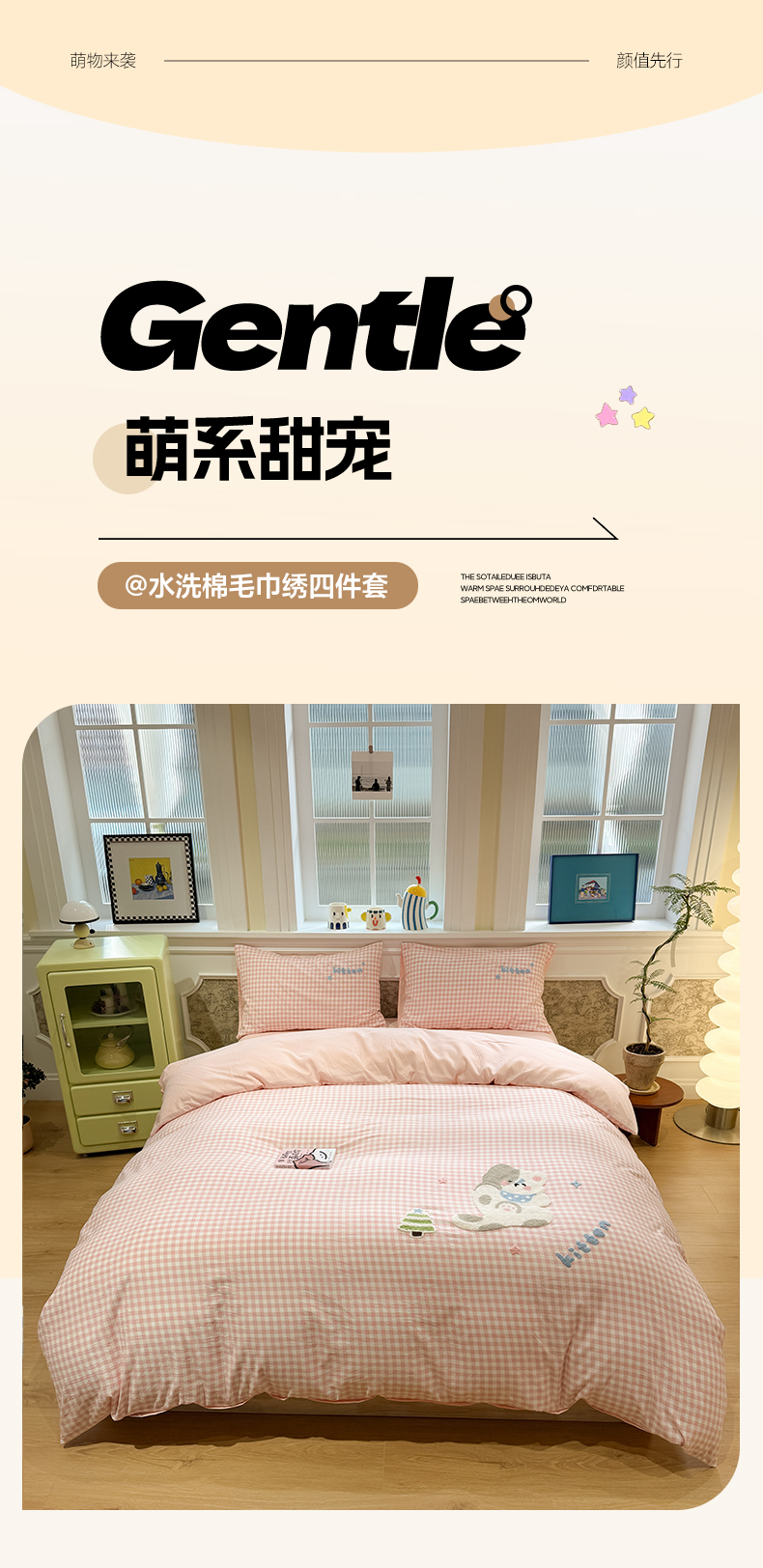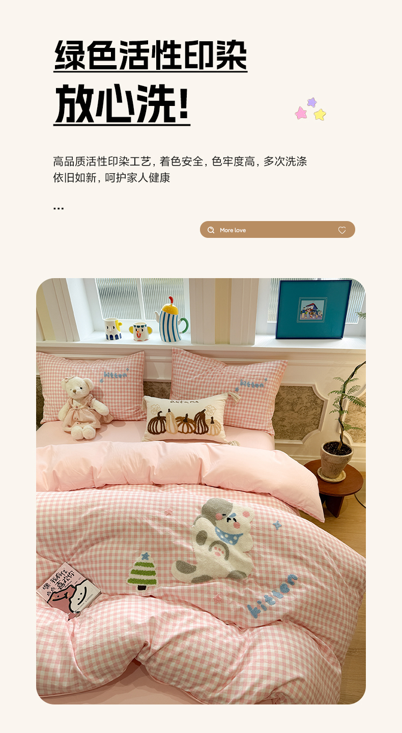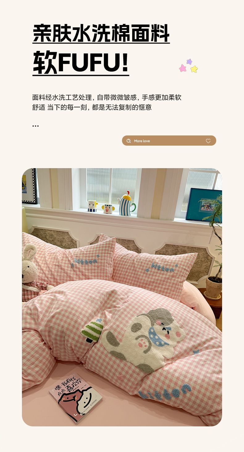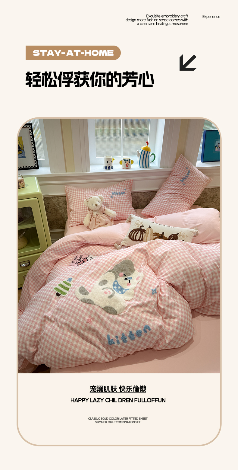 当前位置: 91家纺网 > 商品网购 > 床品套件 > 四件套 > 毛巾绣四件套 > 我心家纺 2026新款水洗棉毛巾绣四件套 美梦小猫-粉格
