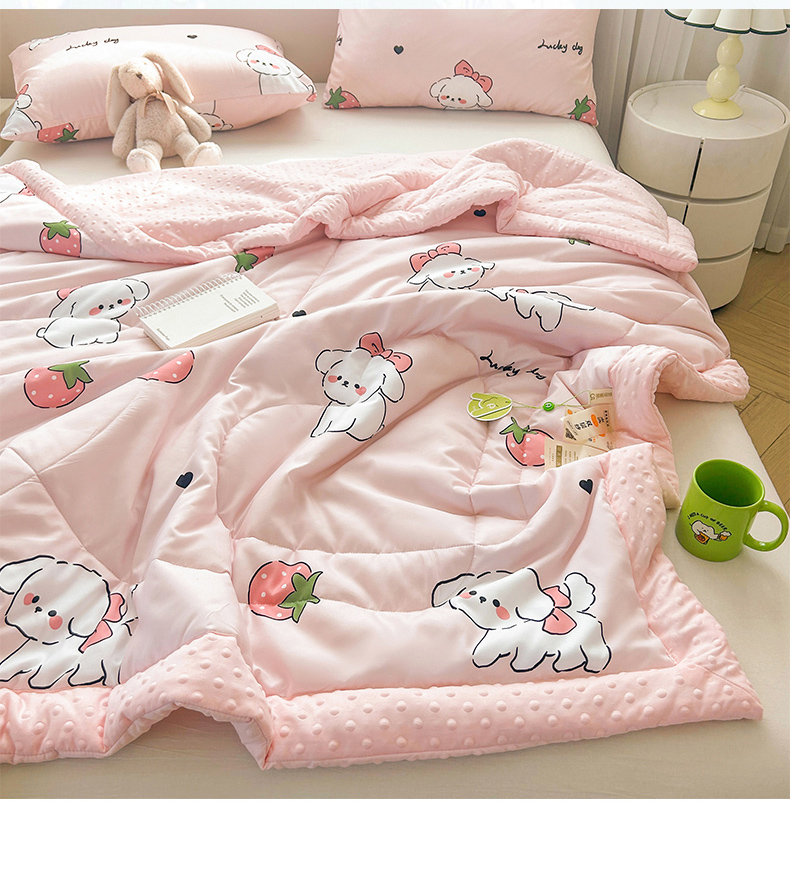 商品名称:悦织语 2026新款水洗棉双层纱豆豆被大豆夏凉被 草莓狗