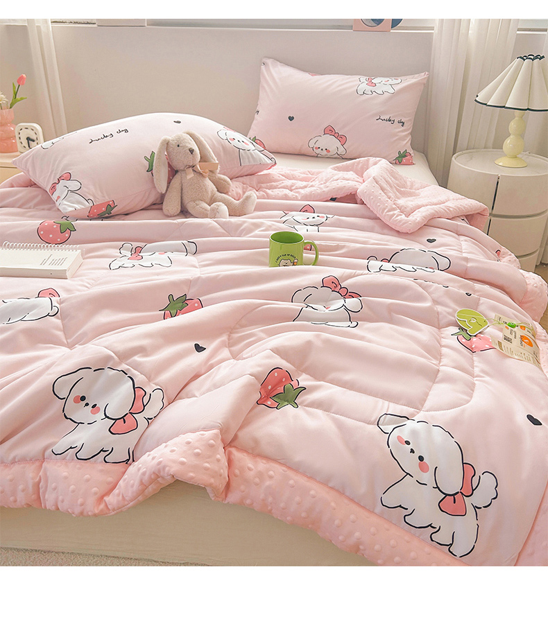 (总)悦织语 2026新款A类针织棉双层纱韩版夏被四件套空调被,甜心库洛,半亩花田,安琪拉兔,草莓熊,春日序,朵朵小花,绿色爱心,兔兔爱果子,晚安熊,希格文,小狗日记,紫风铃,紫萱