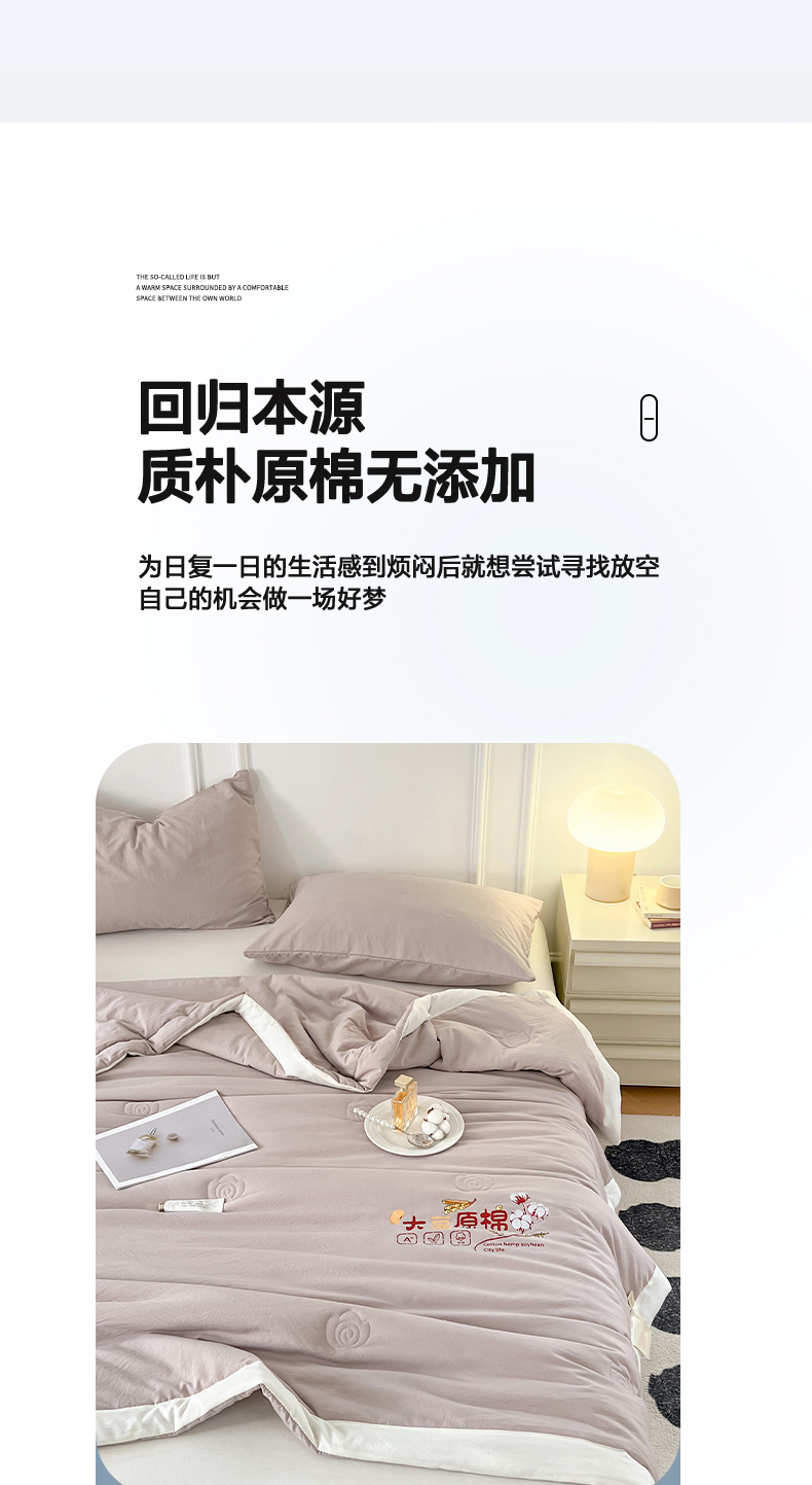 悦织语 2026新款A类纯色原棉大豆夏被 原棉-藕粉