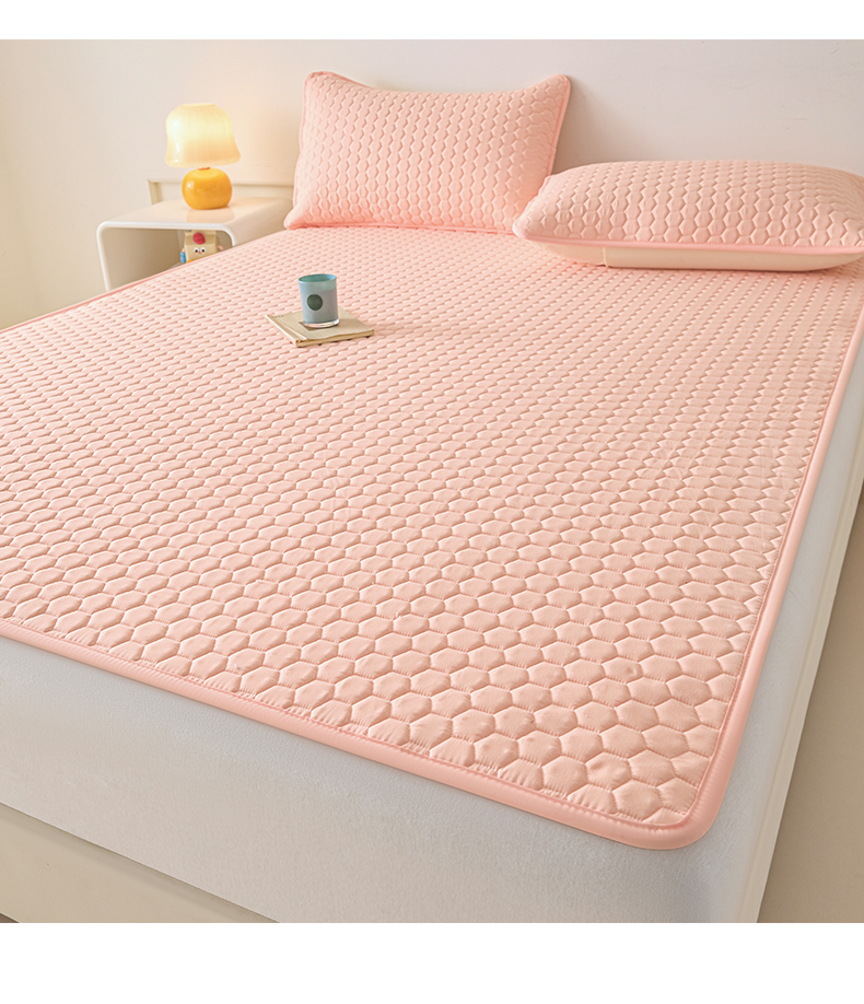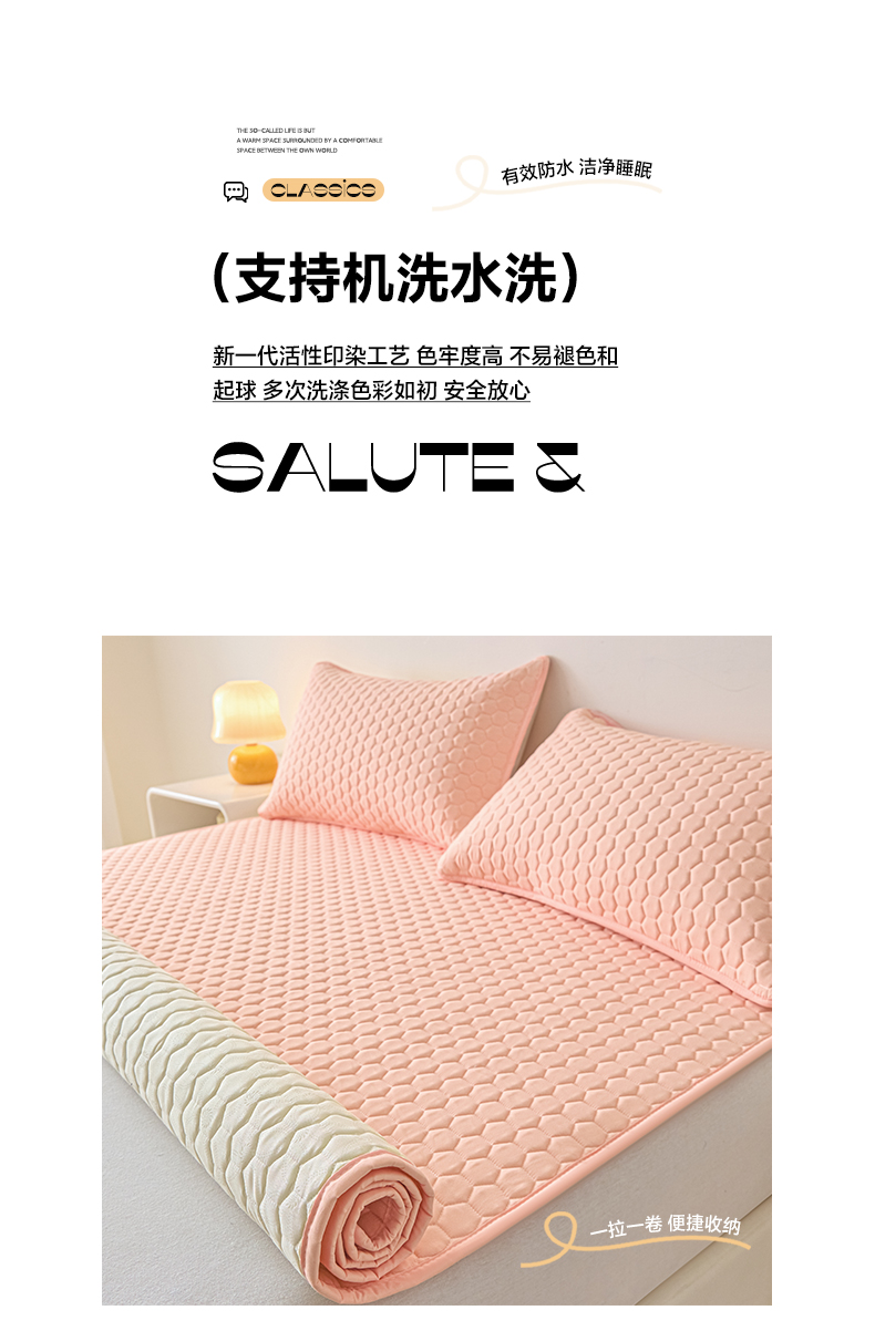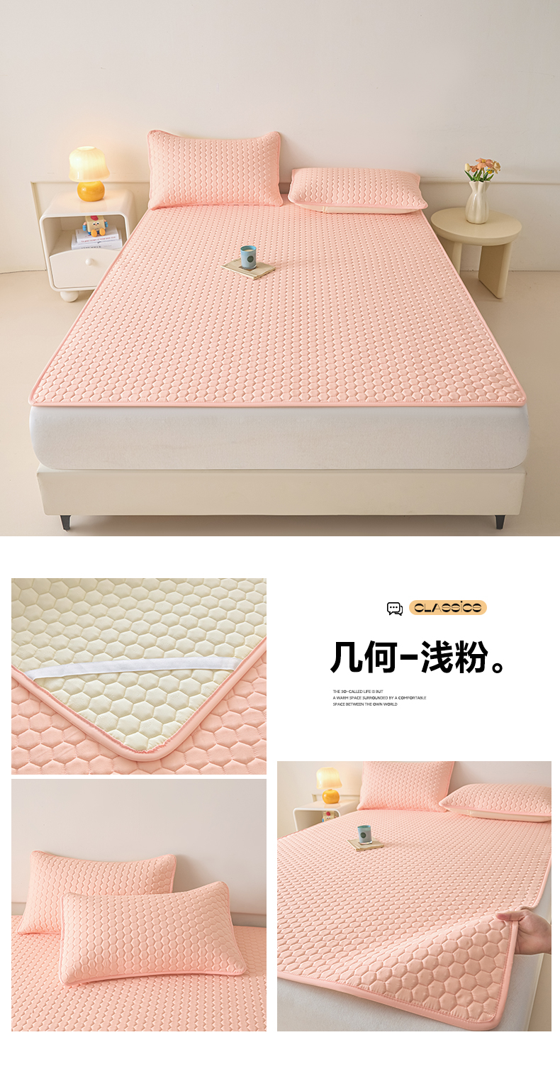 当前位置: 91家纺网 > 商品网购 > 床垫/床褥 > 普通床垫 > 摩妮卡 2026新款水洗棉夹棉防水床褥床垫款三件套 几何-浅粉