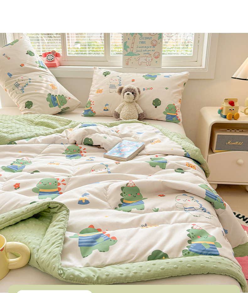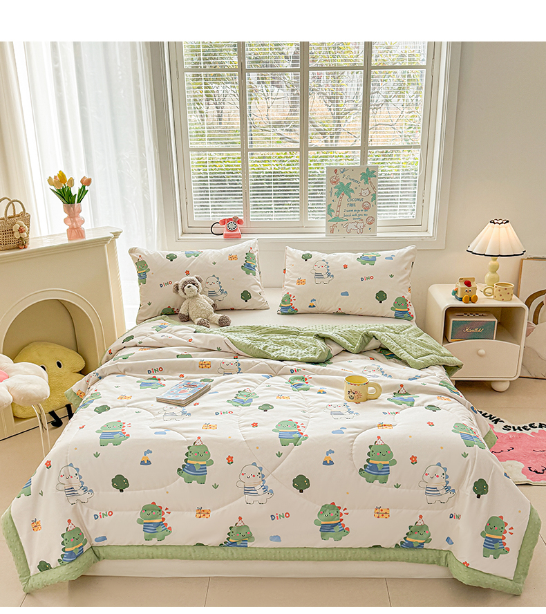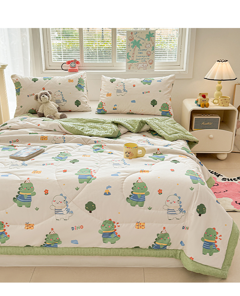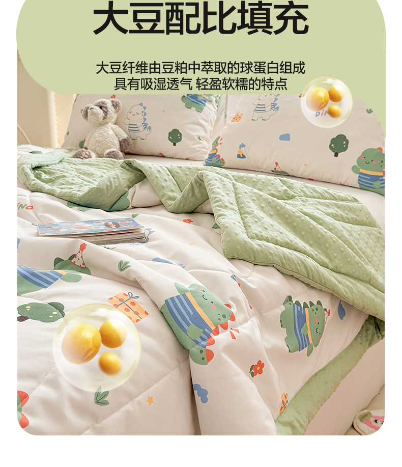 商品名称:悦织语 2026新款A类水洗棉双层纱豆豆被大豆夏凉被 恐龙日记
