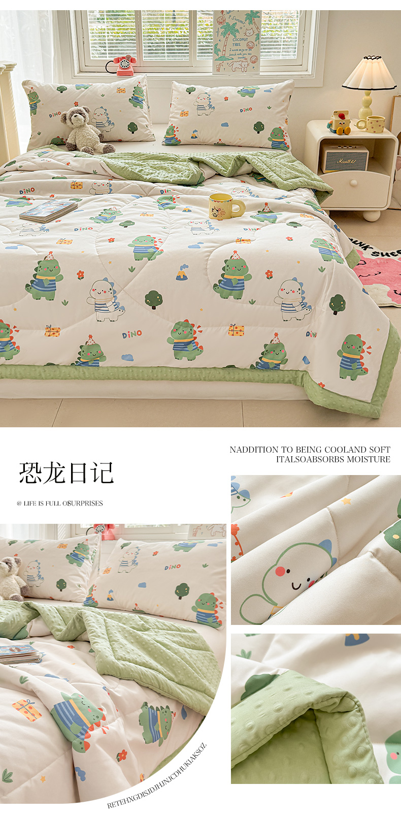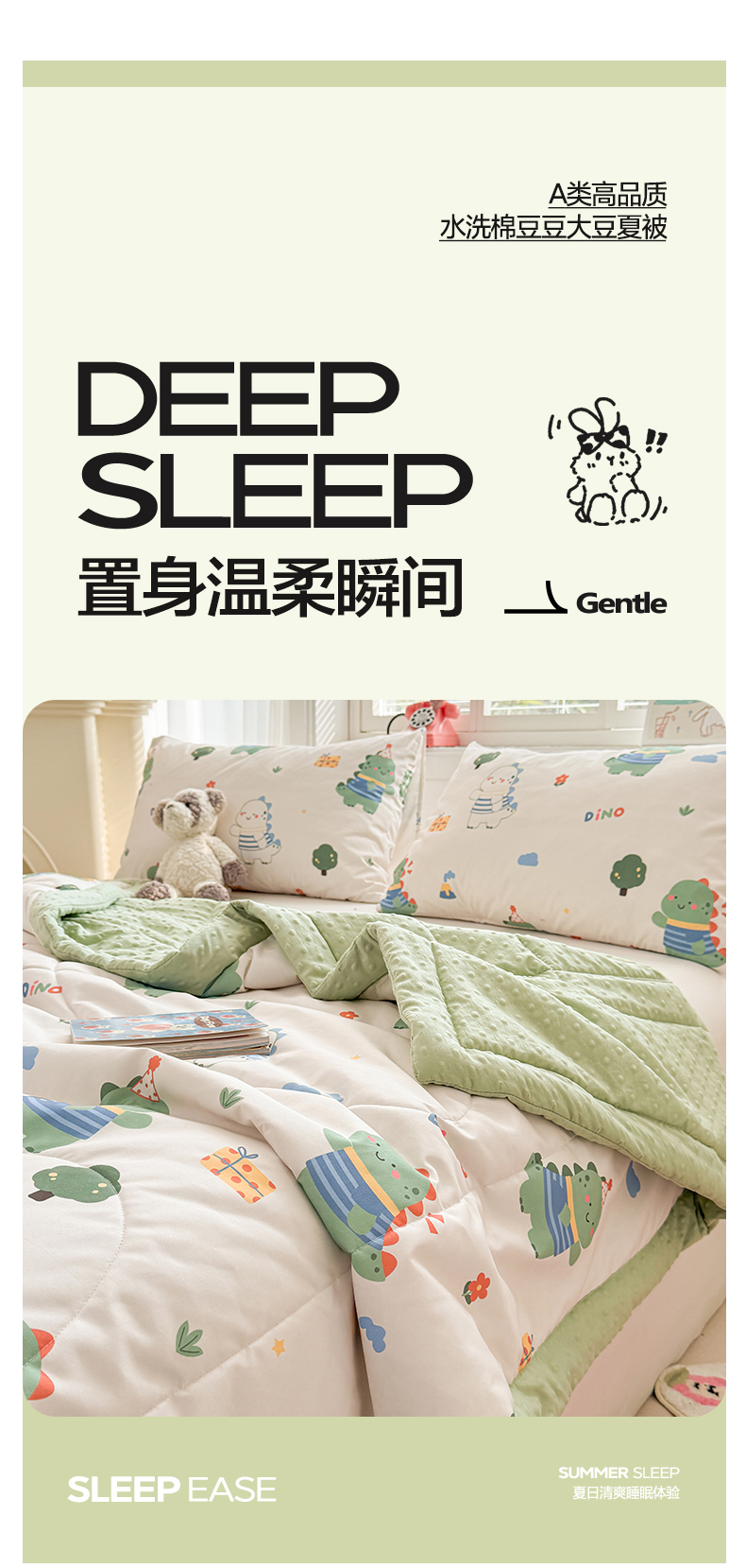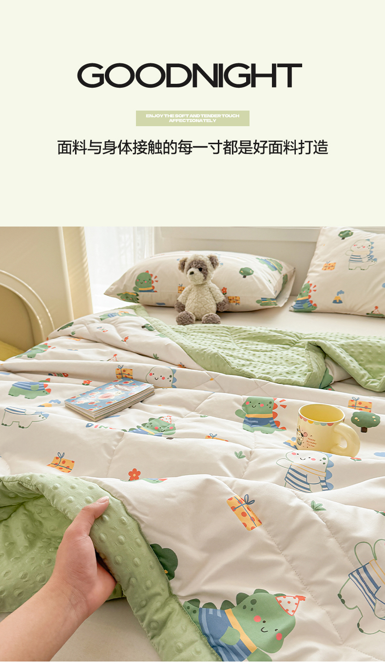 商品名称:悦织语 2026新款A类水洗棉双层纱豆豆被大豆夏凉被 恐龙日记