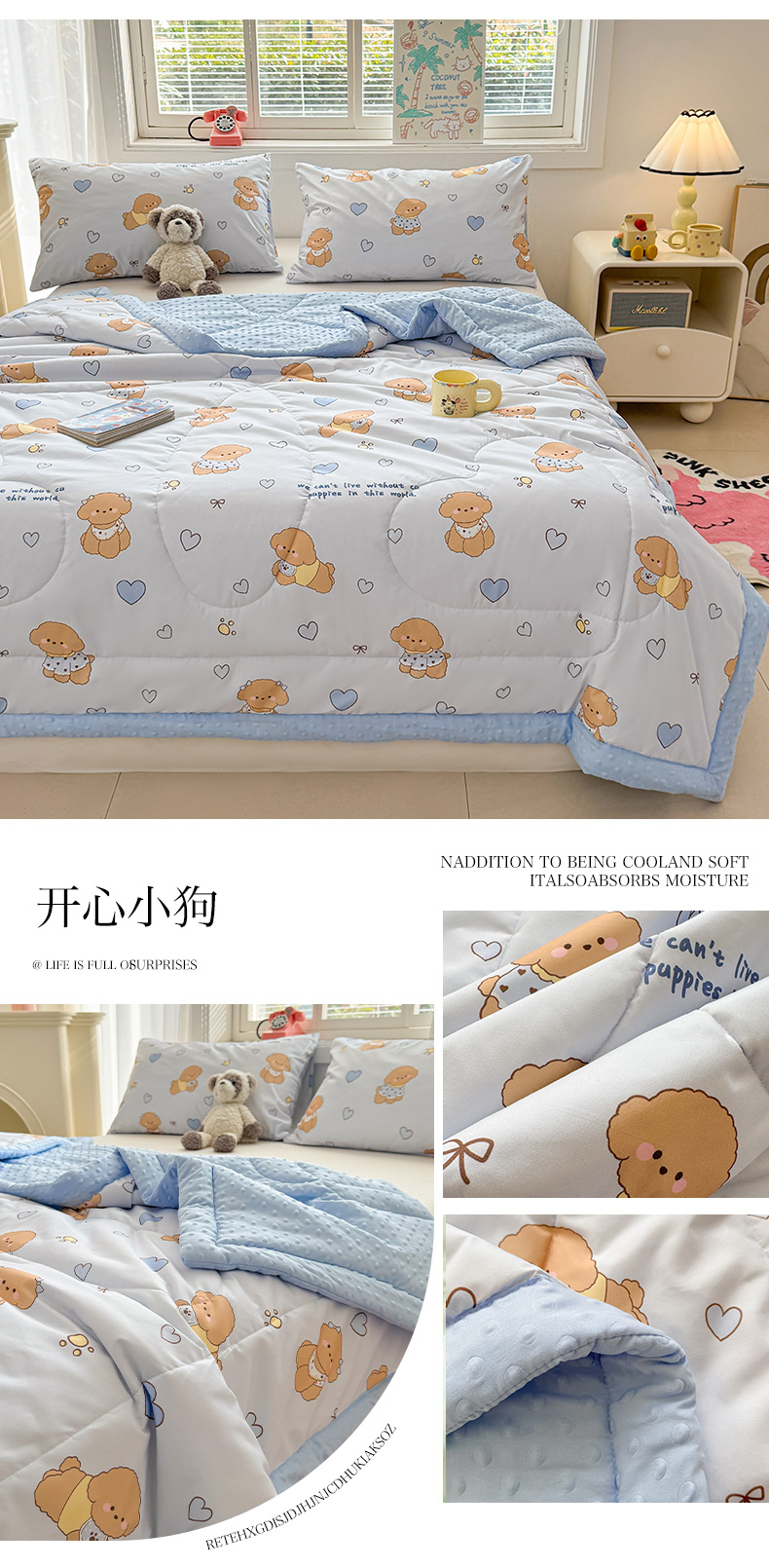 (总)悦织语 2026新款A类针织棉双层纱韩版夏被四件套空调被,甜心库洛,半亩花田,安琪拉兔,草莓熊,春日序,朵朵小花,绿色爱心,兔兔爱果子,晚安熊,希格文,小狗日记,紫风铃,紫萱