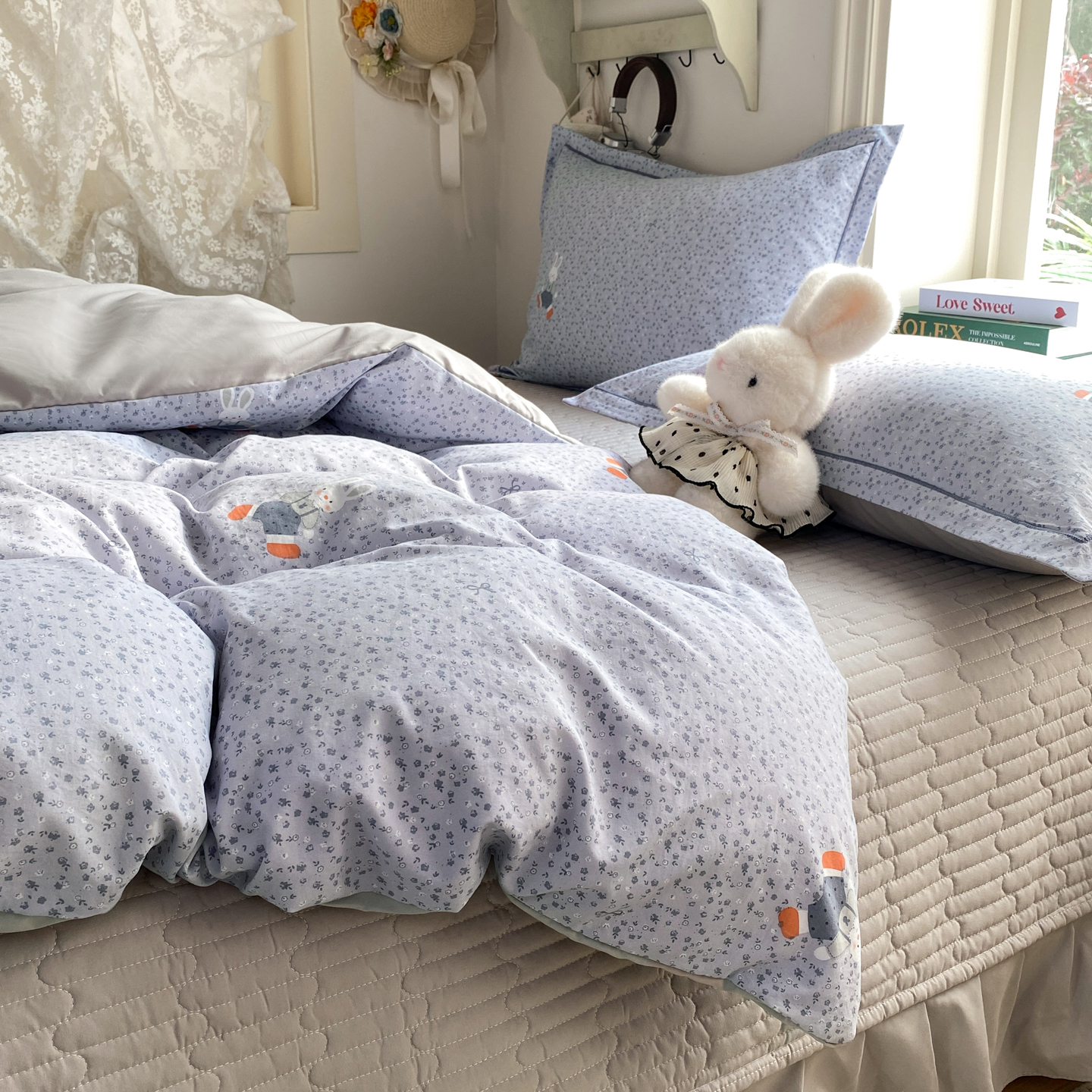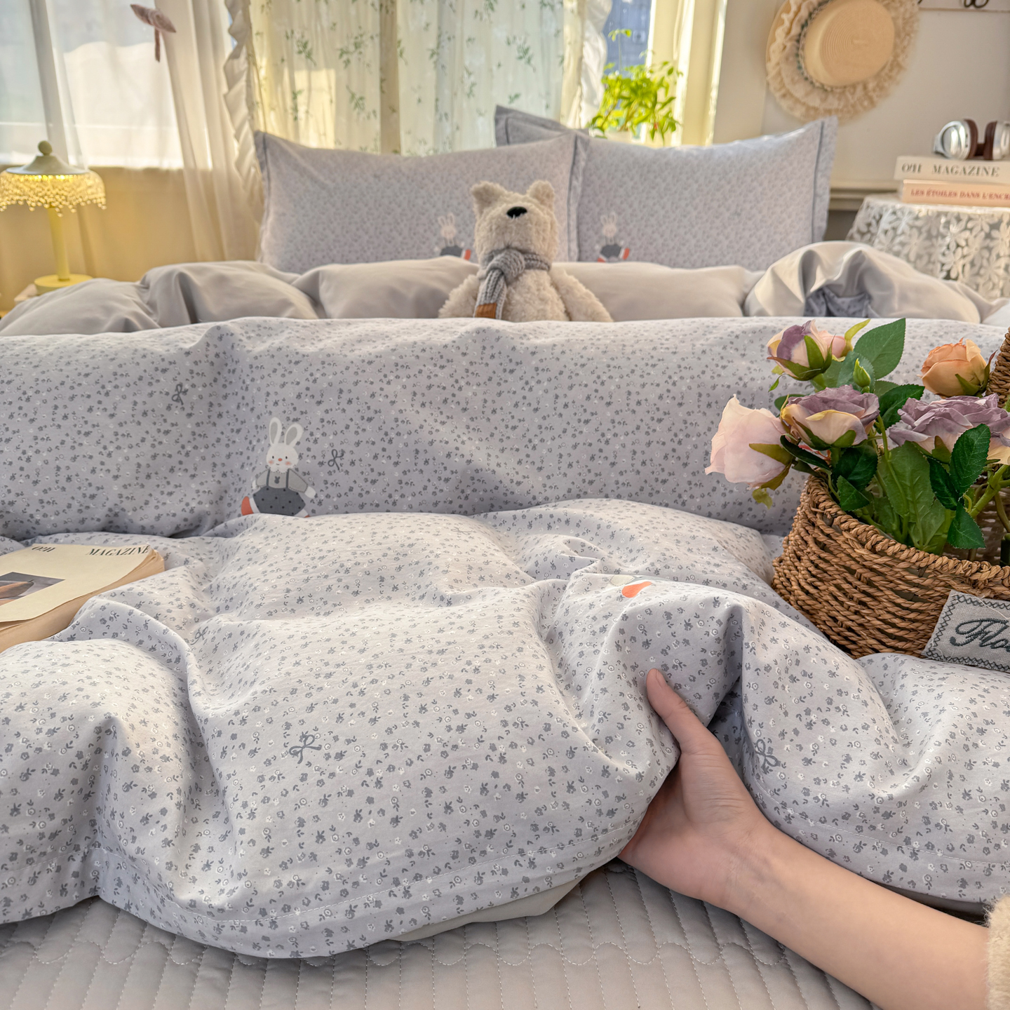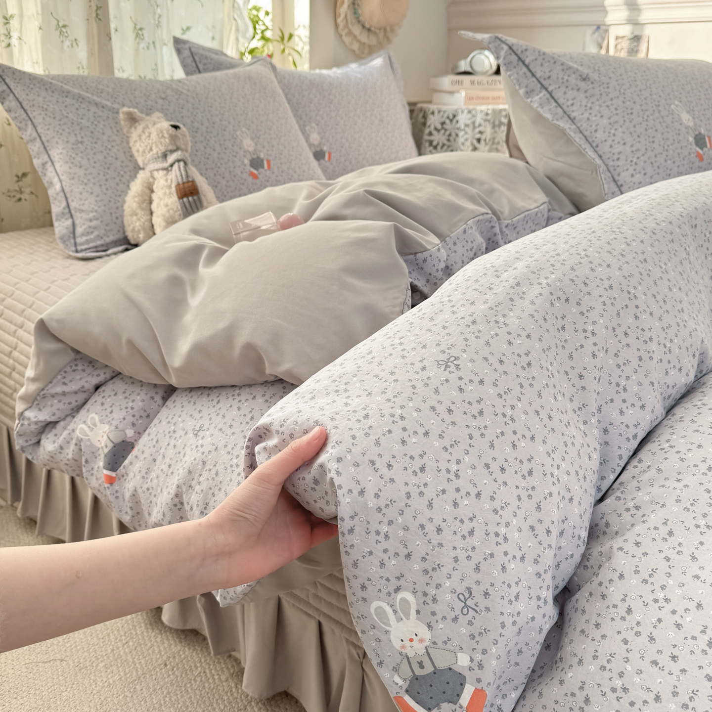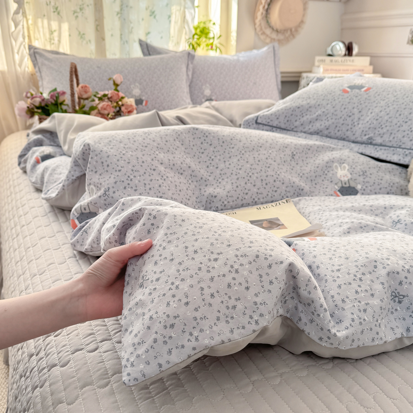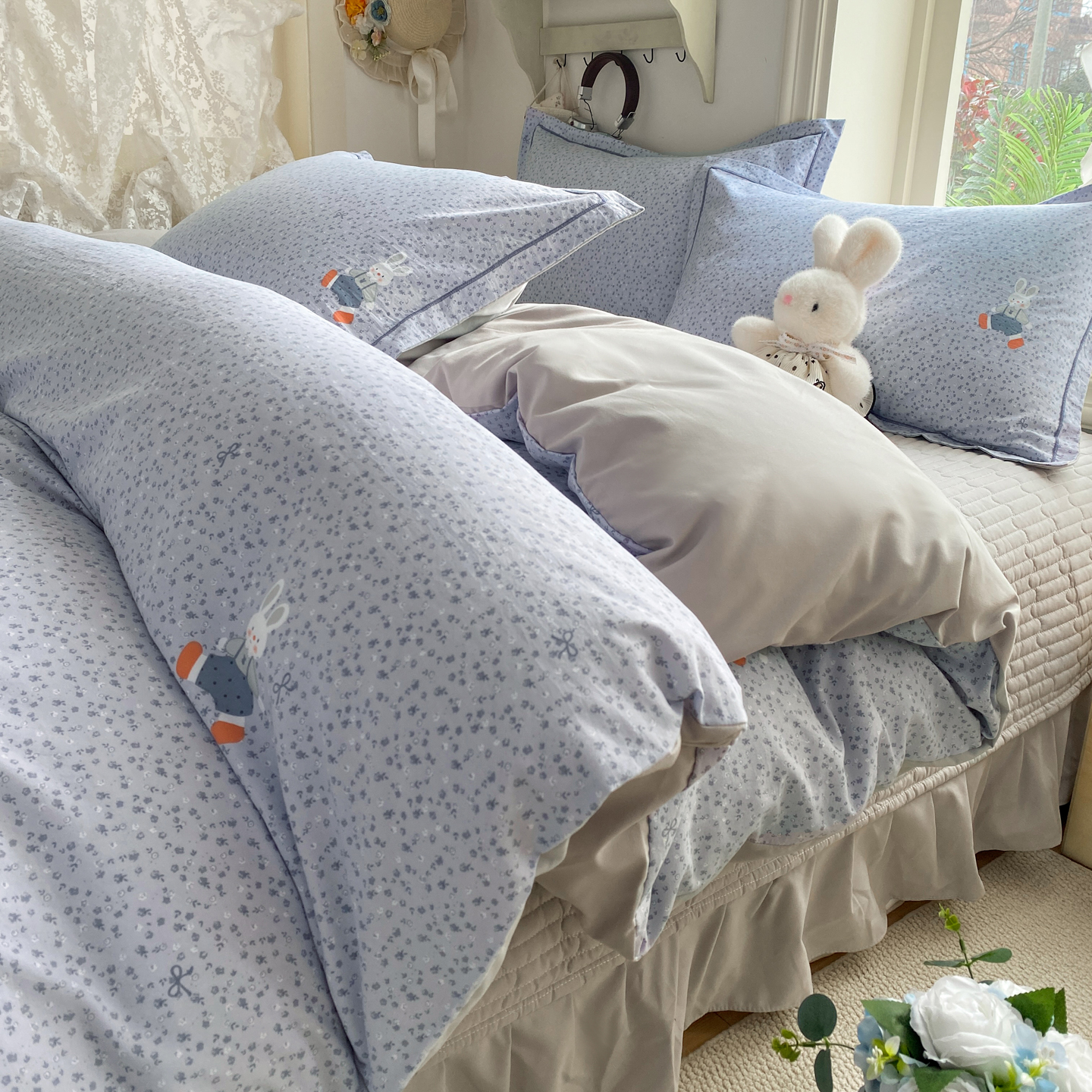 商品名称:富之航家纺 2026新款小清新床盖四件套 童年小兔