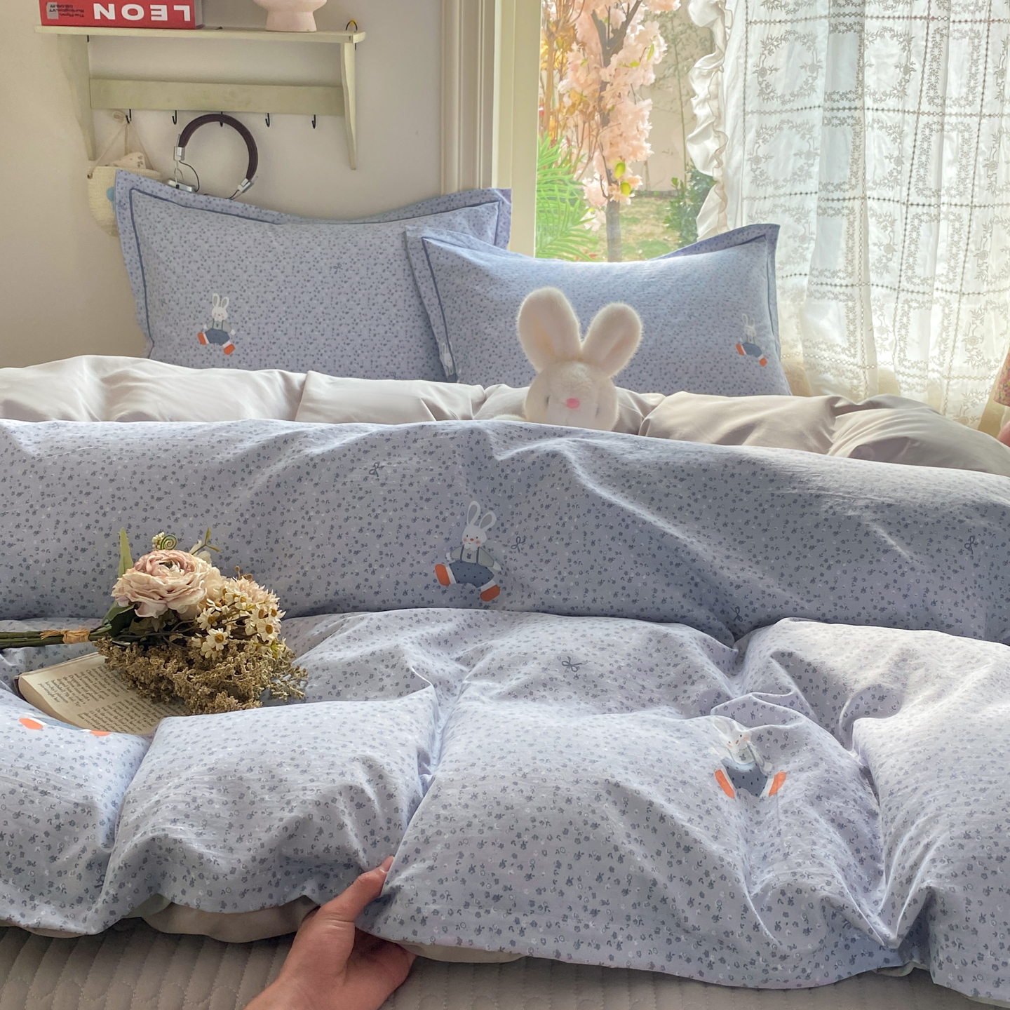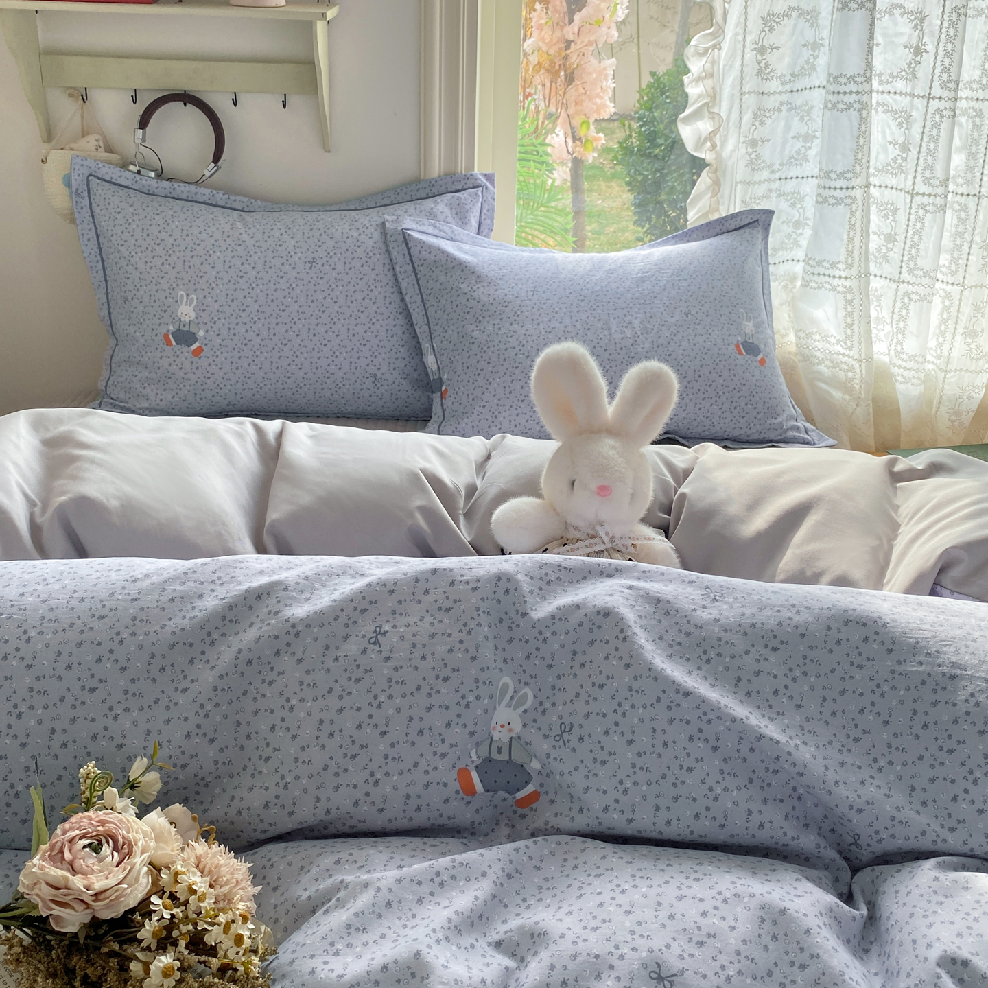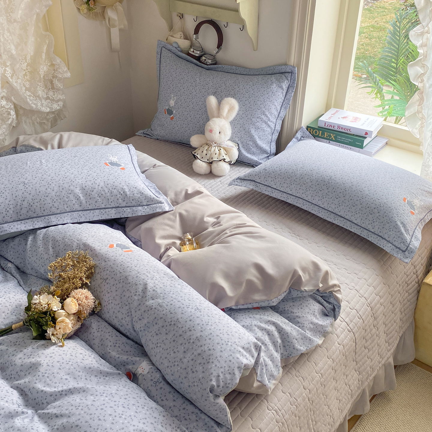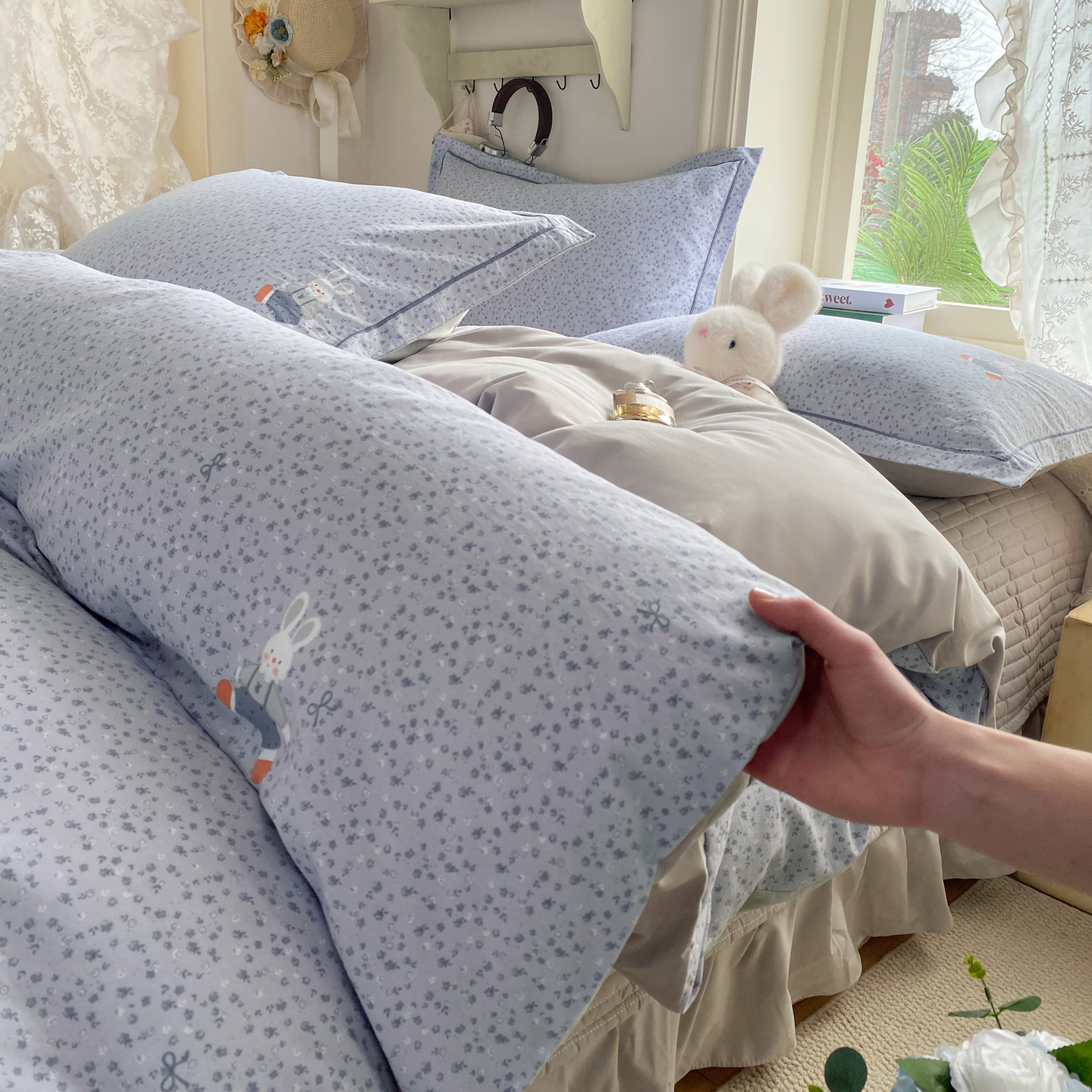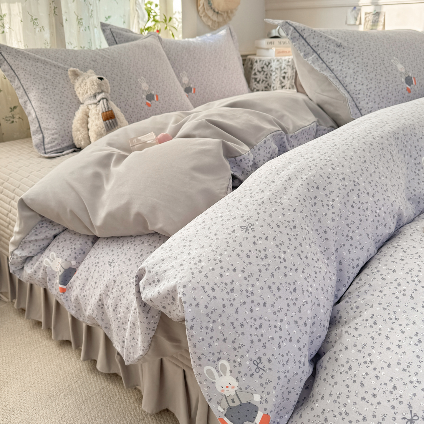 商品名称:富之航家纺 2026新款小清新床盖四件套 童年小兔