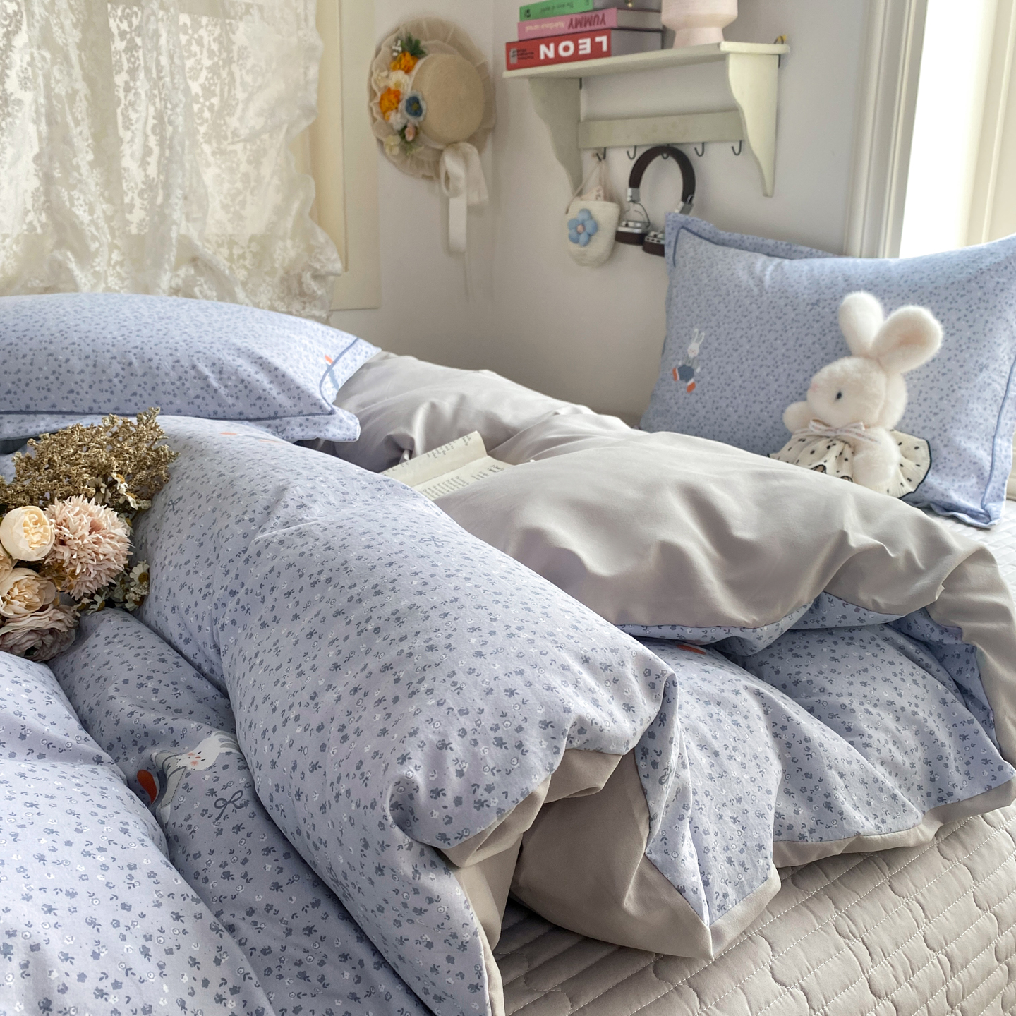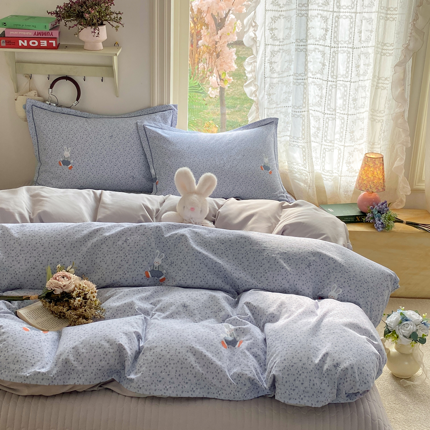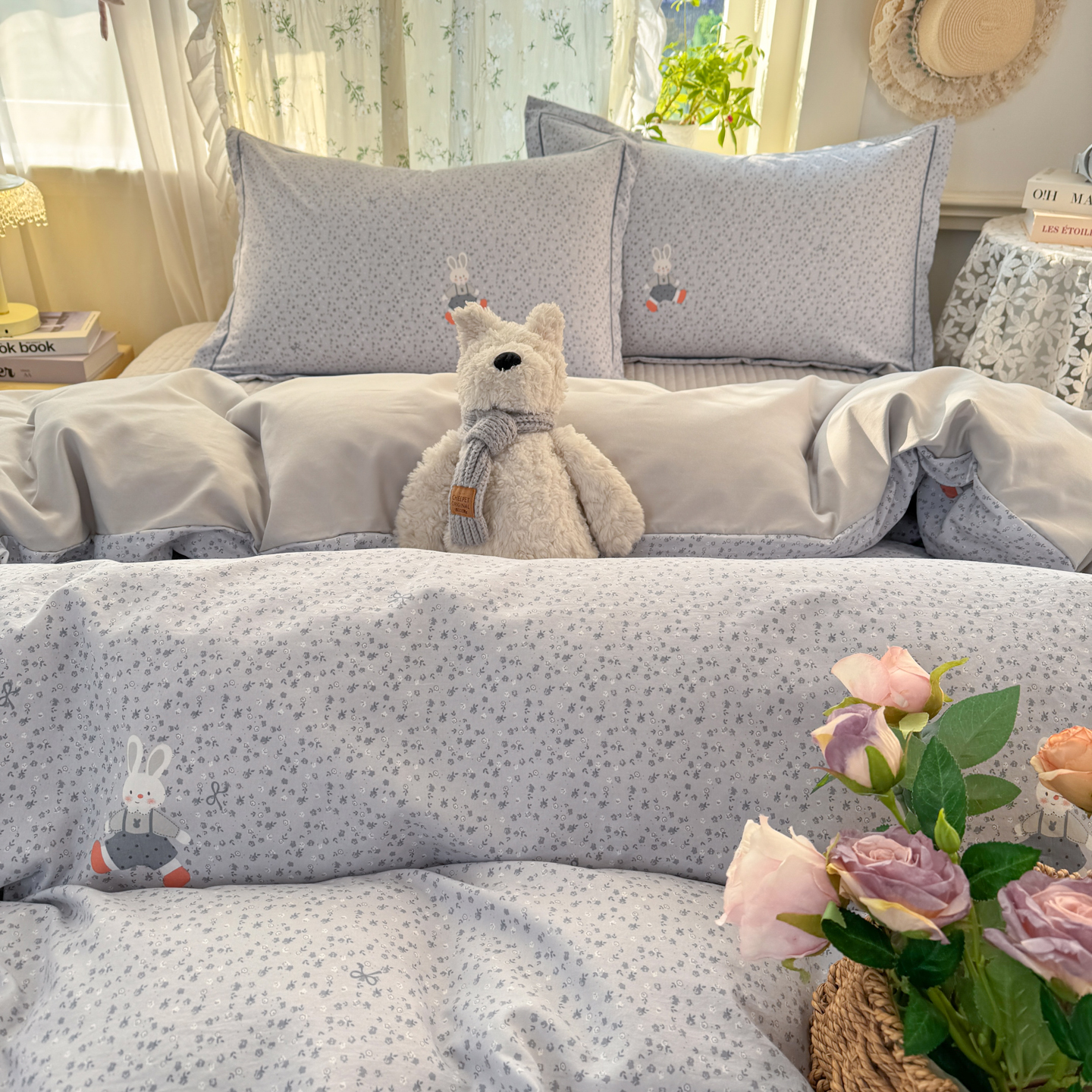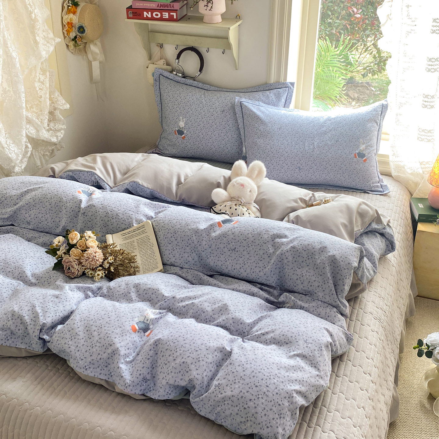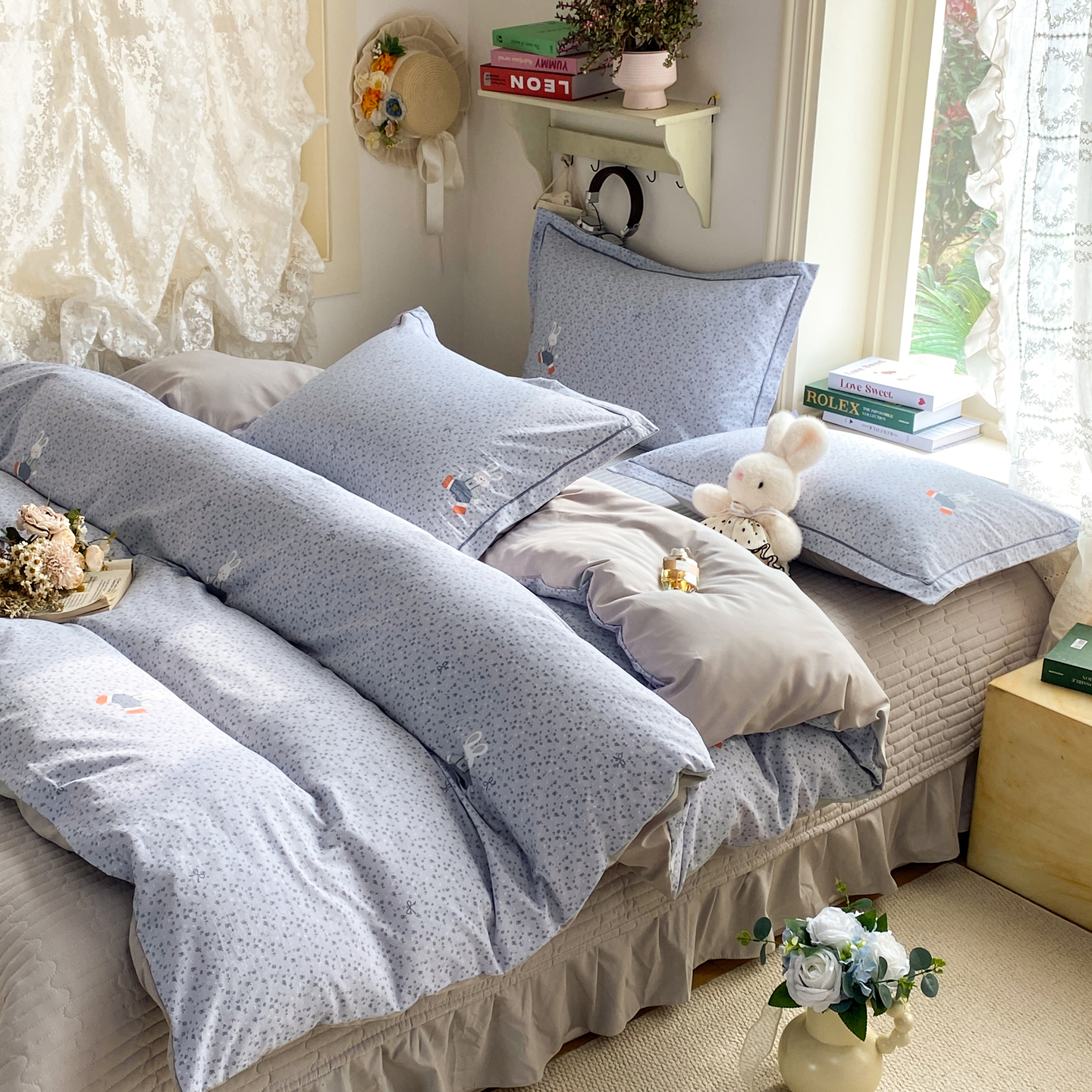 商品名称:富之航家纺 2026新款小清新床盖四件套 童年小兔