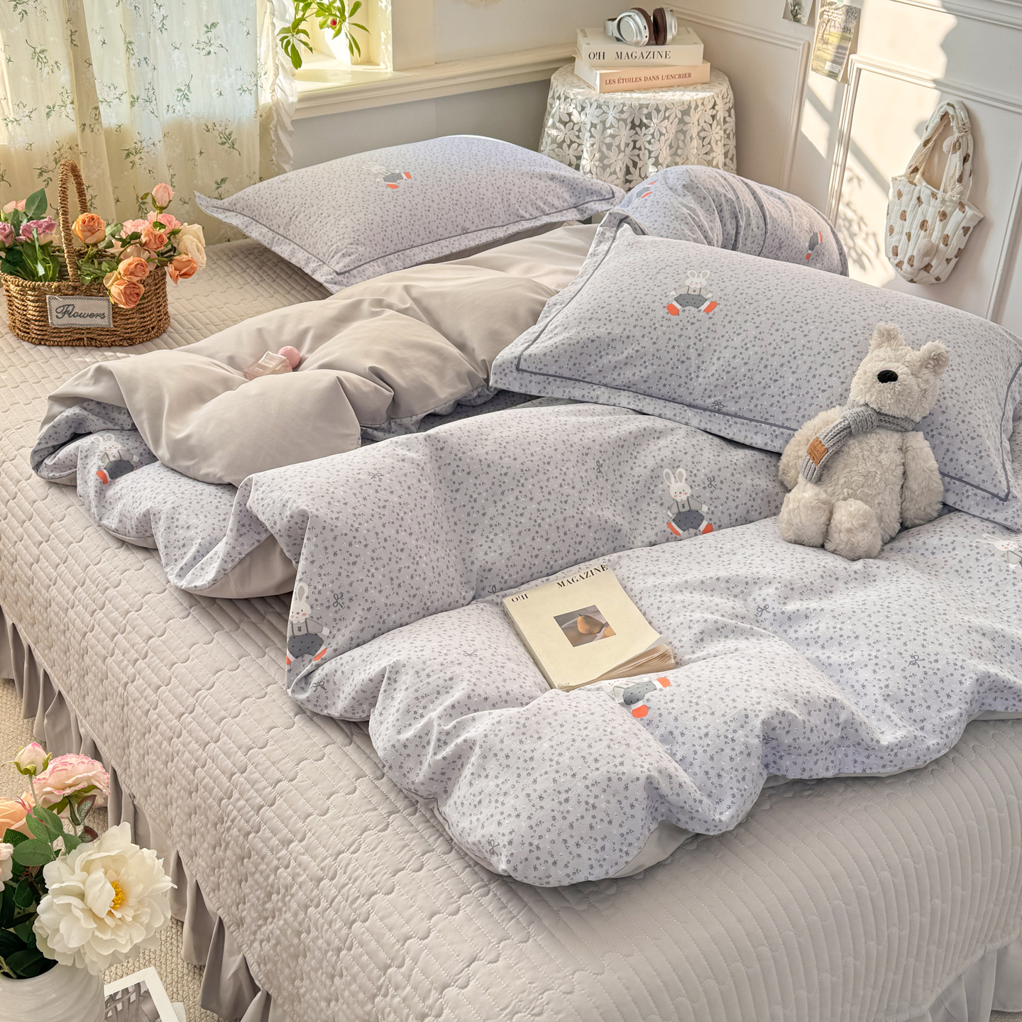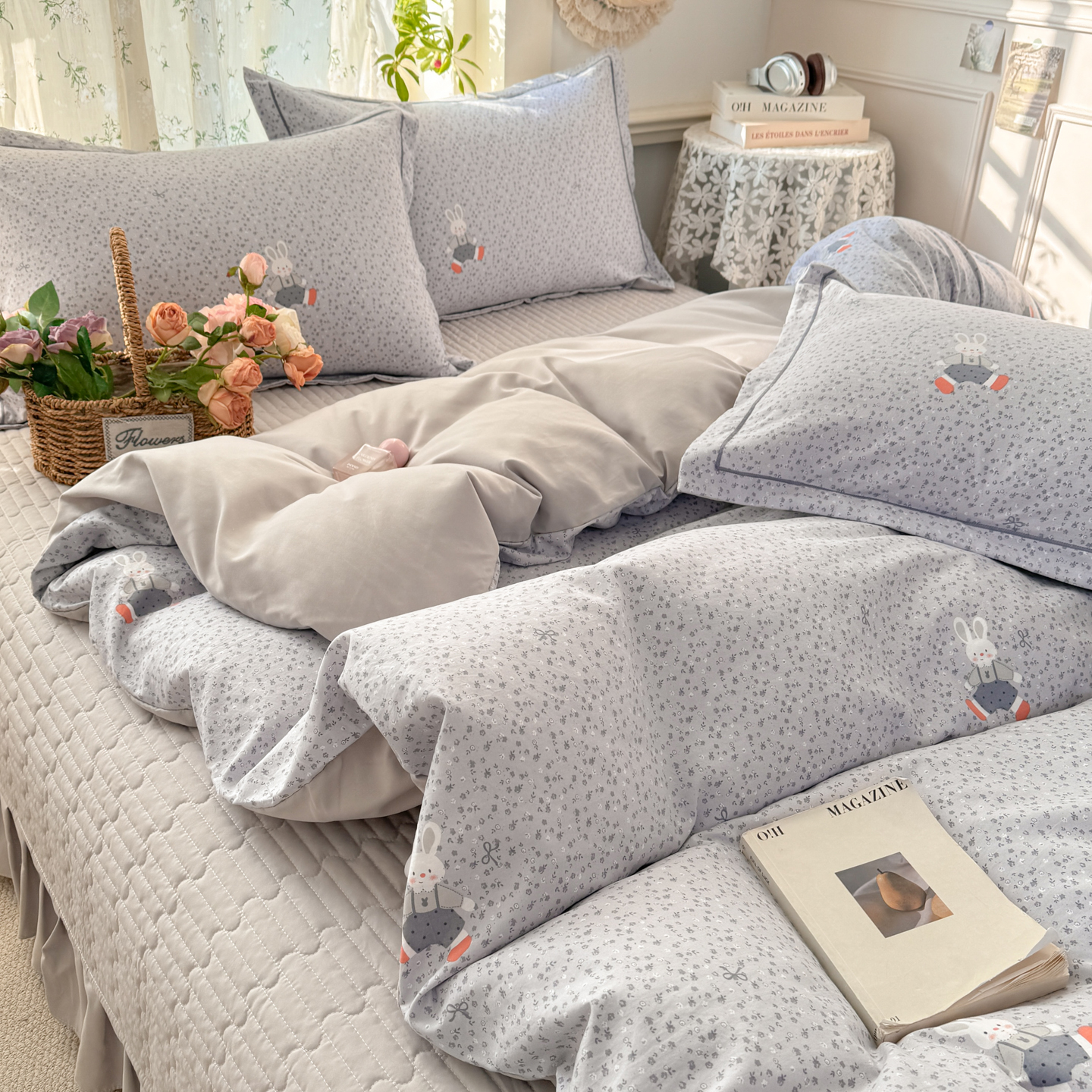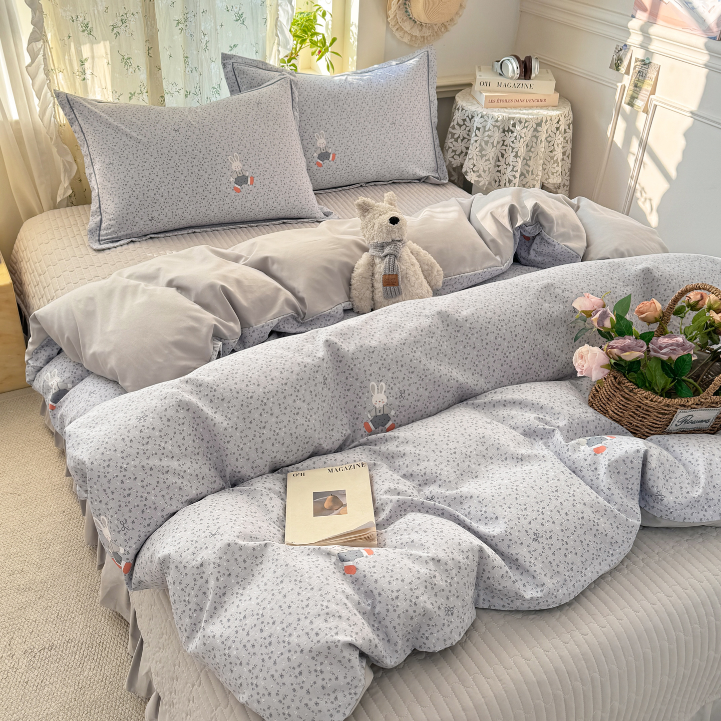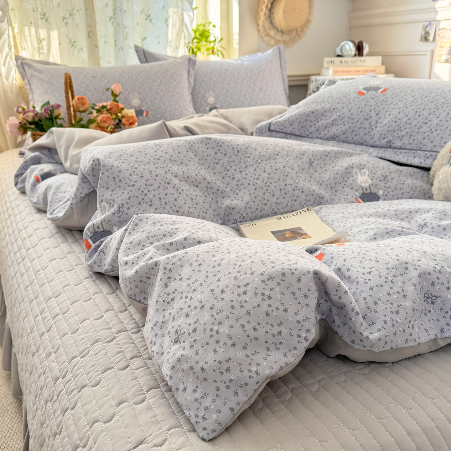 富之航家纺 2026新款小清新床盖四件套 童年小兔