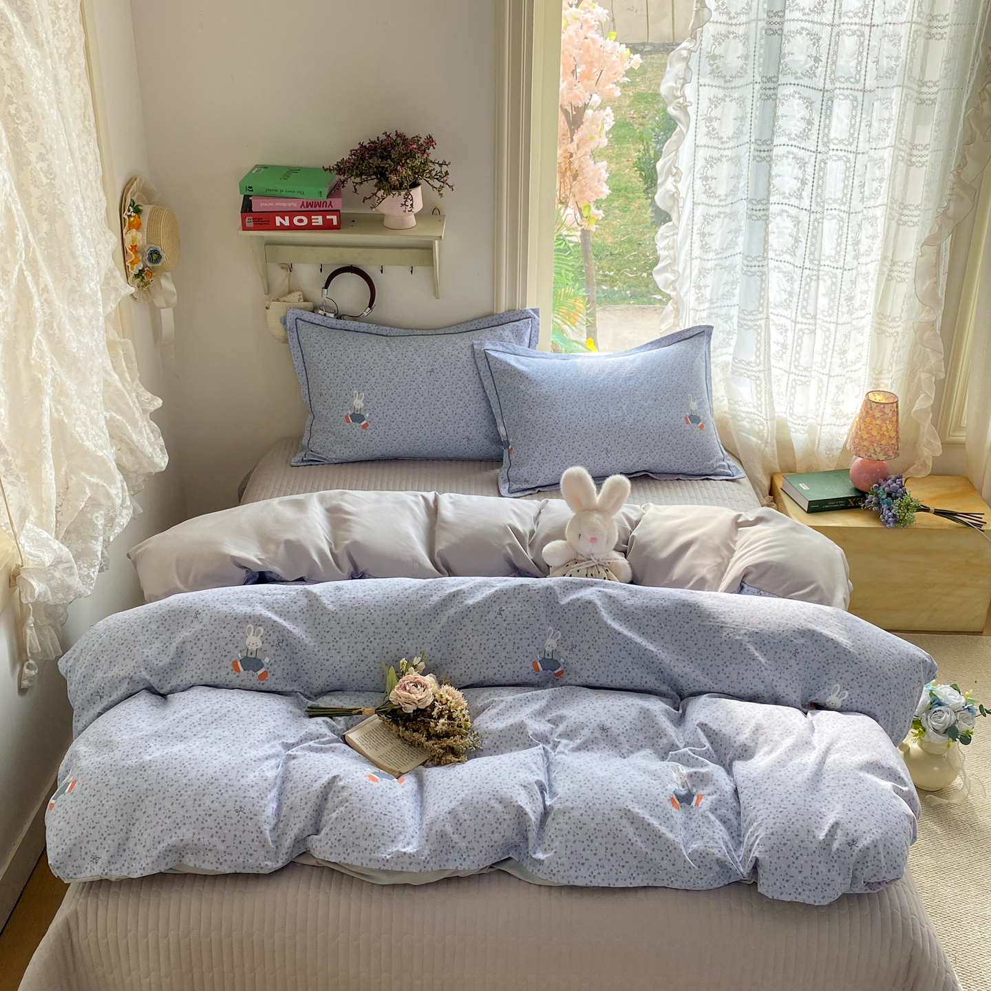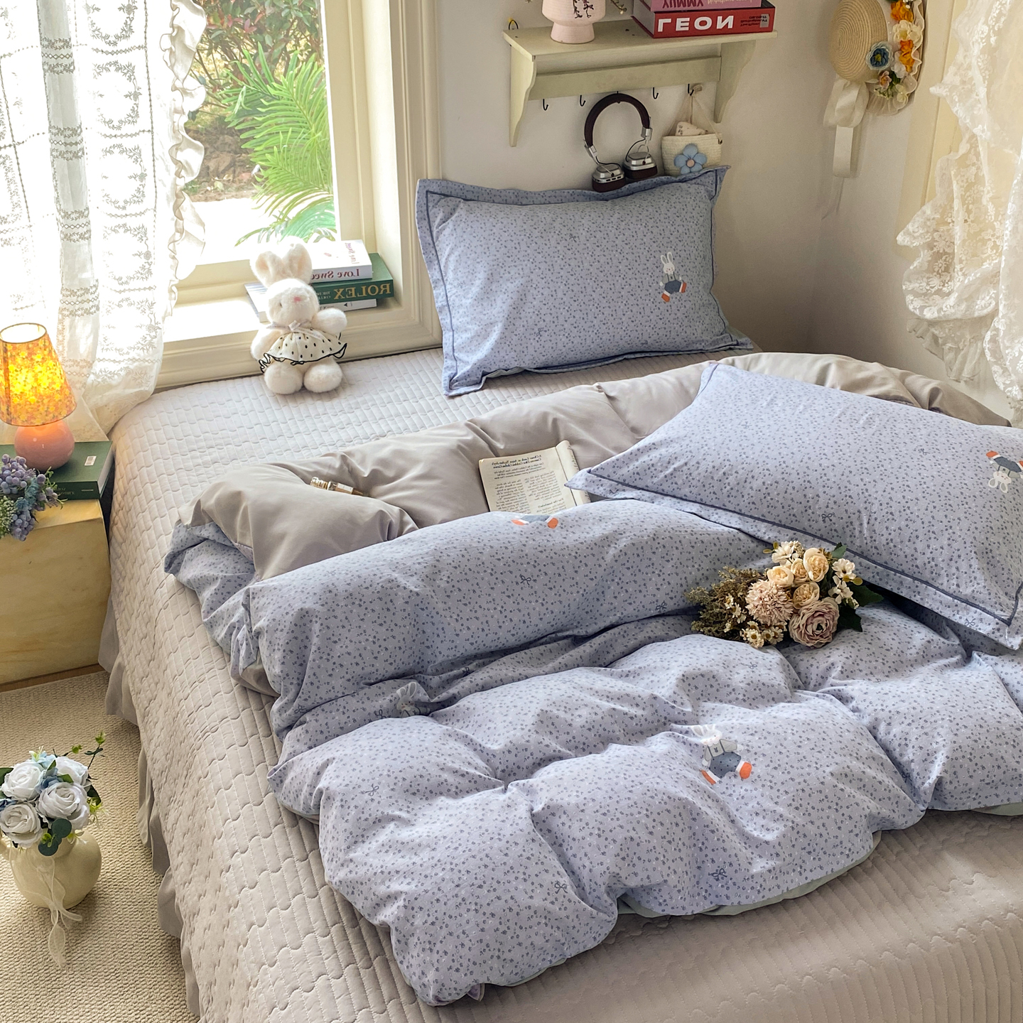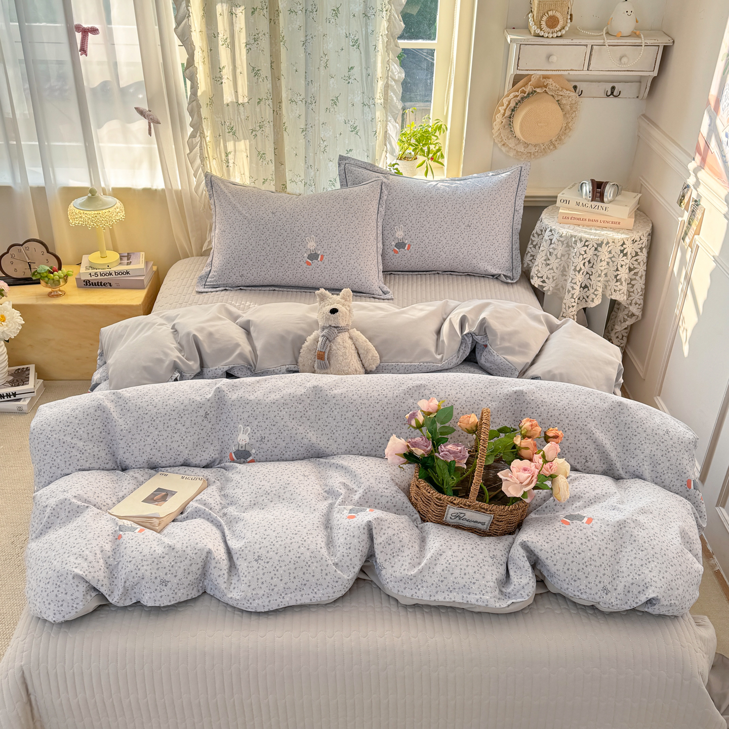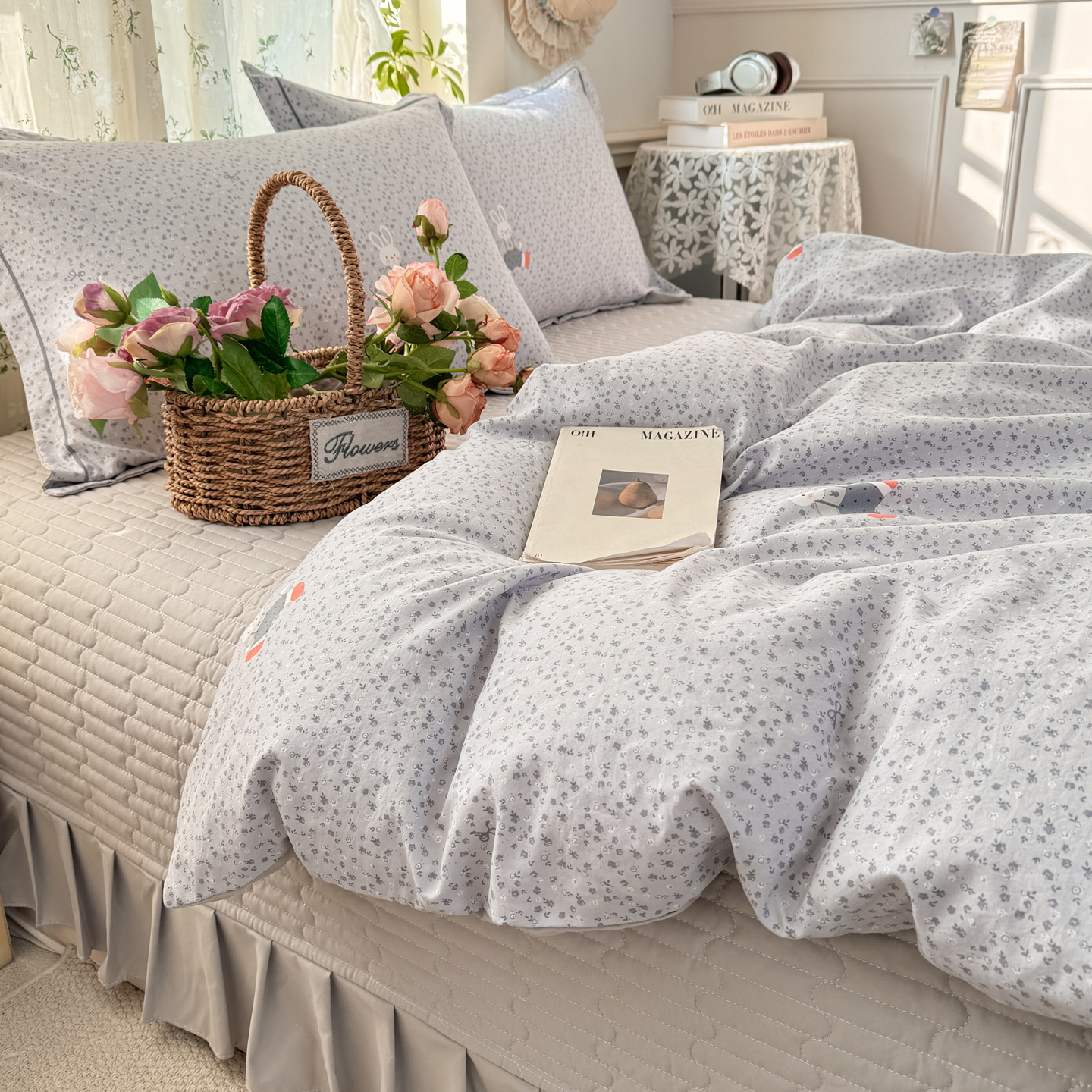 富之航家纺 2026新款小清新床盖四件套 童年小兔