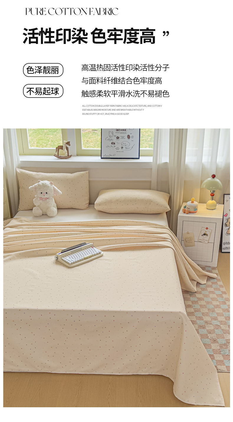 爱彼家纺 2026新款细沙卡通原棉老粗布床单凉席床单三件套-新升级细沙 彩虹波点