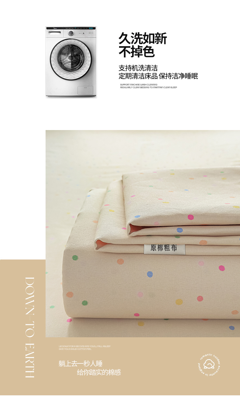 • 91家纺网 家纺一手货源 找家纺 爱彼家纺 2026新款细沙卡通原棉老粗布床单凉席床单三件套-新升级细沙 彩虹波点
