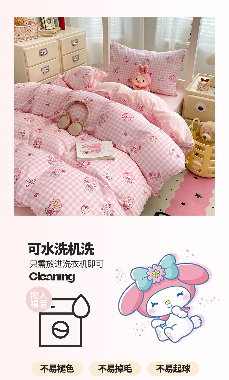 (总)梦卓家纺 2026新款学生季超柔水洗棉印花卡通宿舍上下铺三件套