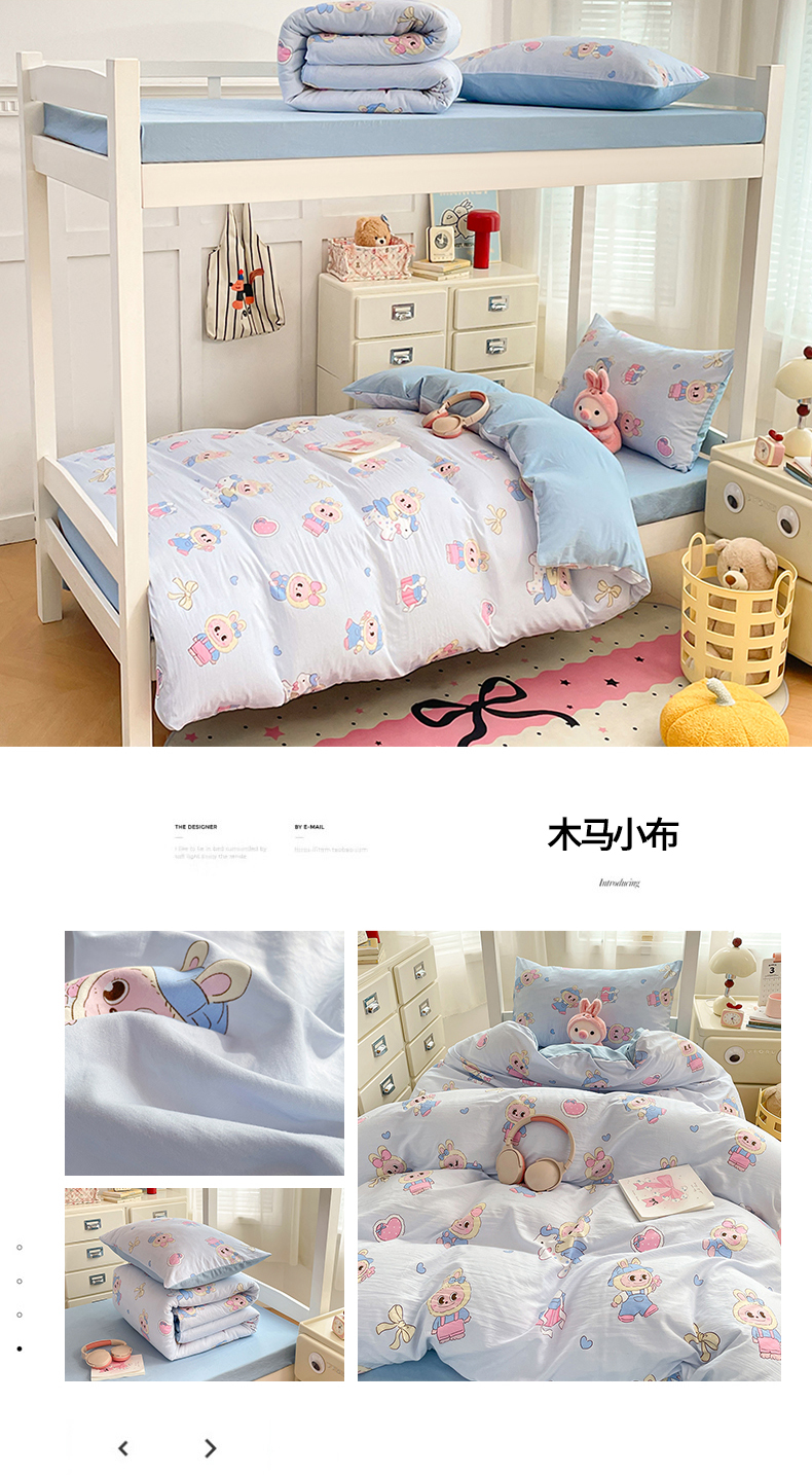 商品名称:(总)梦卓家纺 2026新款学生季超柔水洗棉印花卡通宿舍上下铺三件套