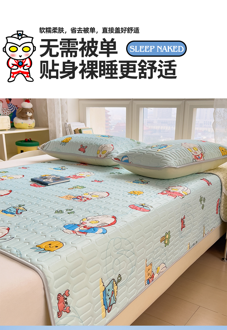 兄弟坊 2026新款A类正版授权卡通乳胶凉席夏被四件套 夏日奥特