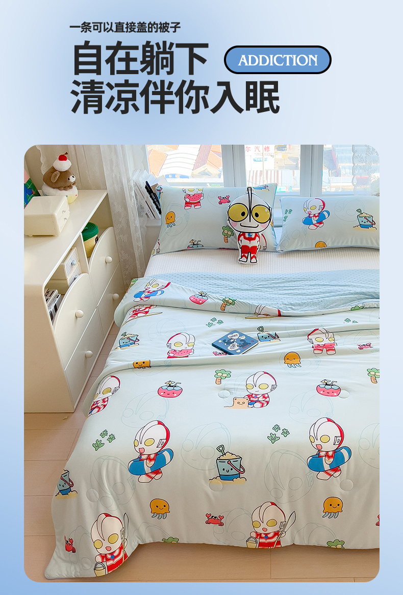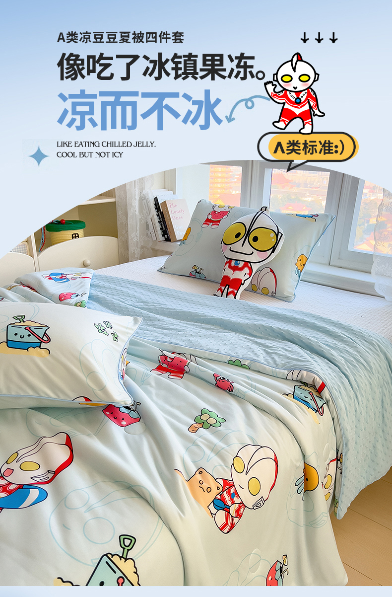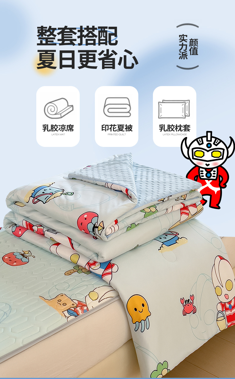 商品名称:兄弟坊 2026新款A类正版授权卡通乳胶凉席夏被四件套 夏日奥特