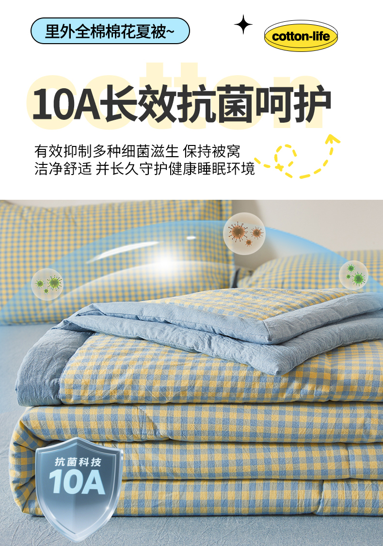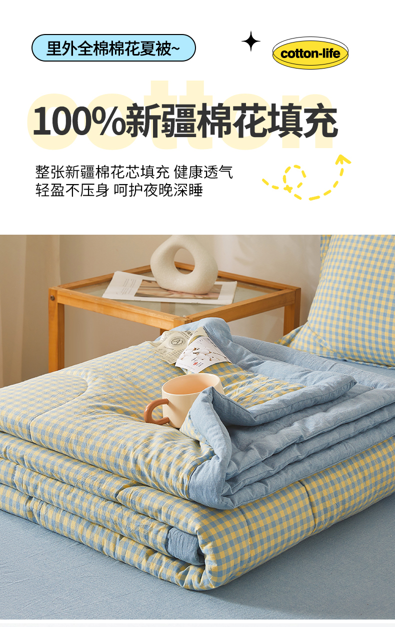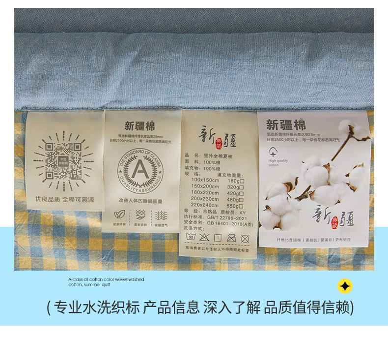 商品名称:(总)西域种棉人·千百笠 2026新款A类里外全棉夏凉被100%新疆棉纯棉全棉填充无印格子款空调被夏被