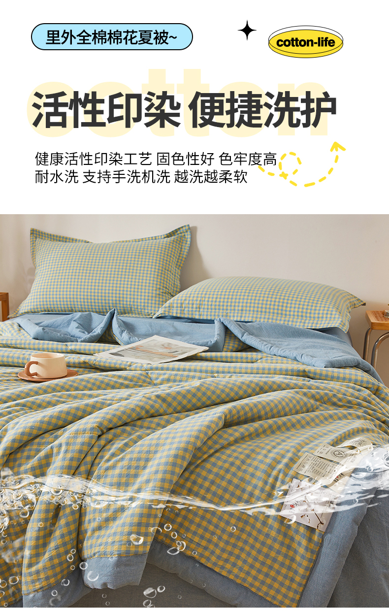 (总)西域种棉人·千百笠 2026新款A类新疆棉花夏凉被加宽包边水洗棉无印格子印花吸湿透气棉花夏被空调被,格子灰,格子蓝,格子熊,格子紫,小格灰,小格绿