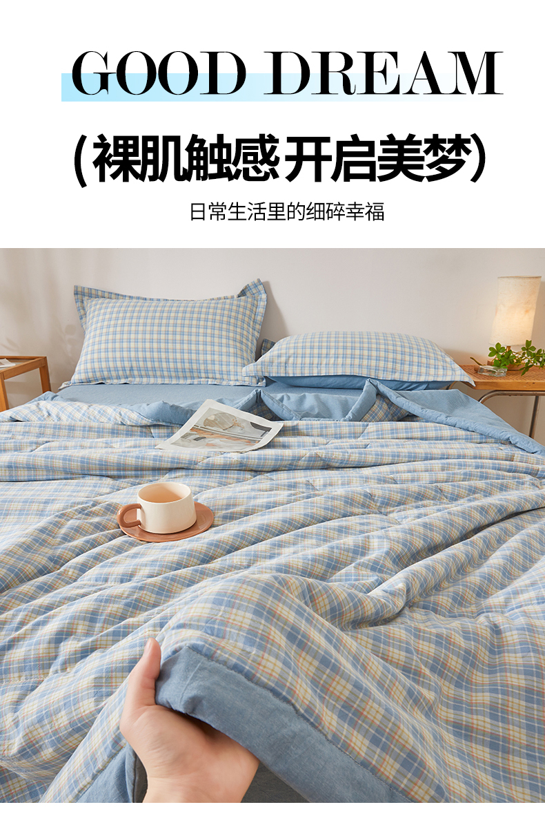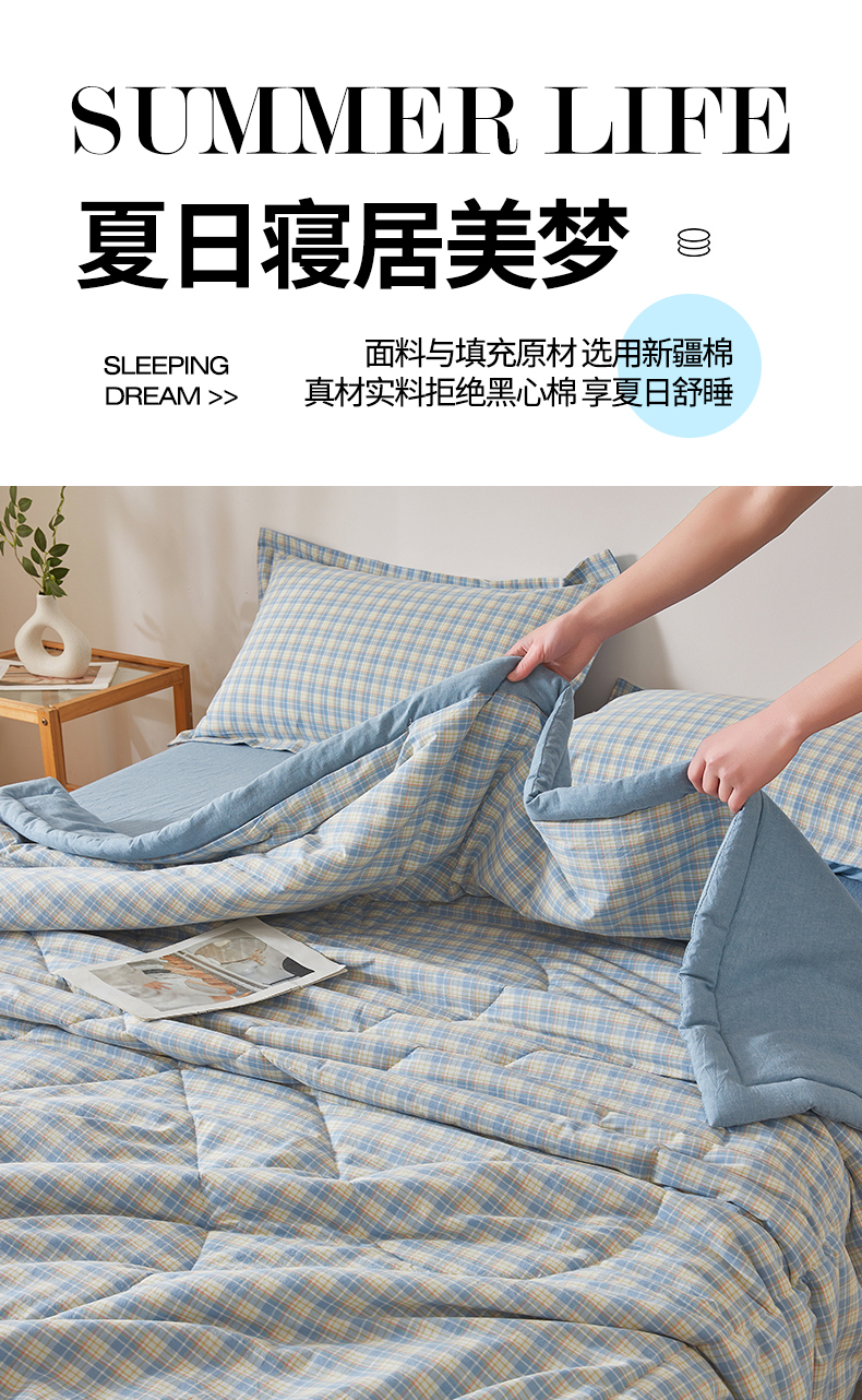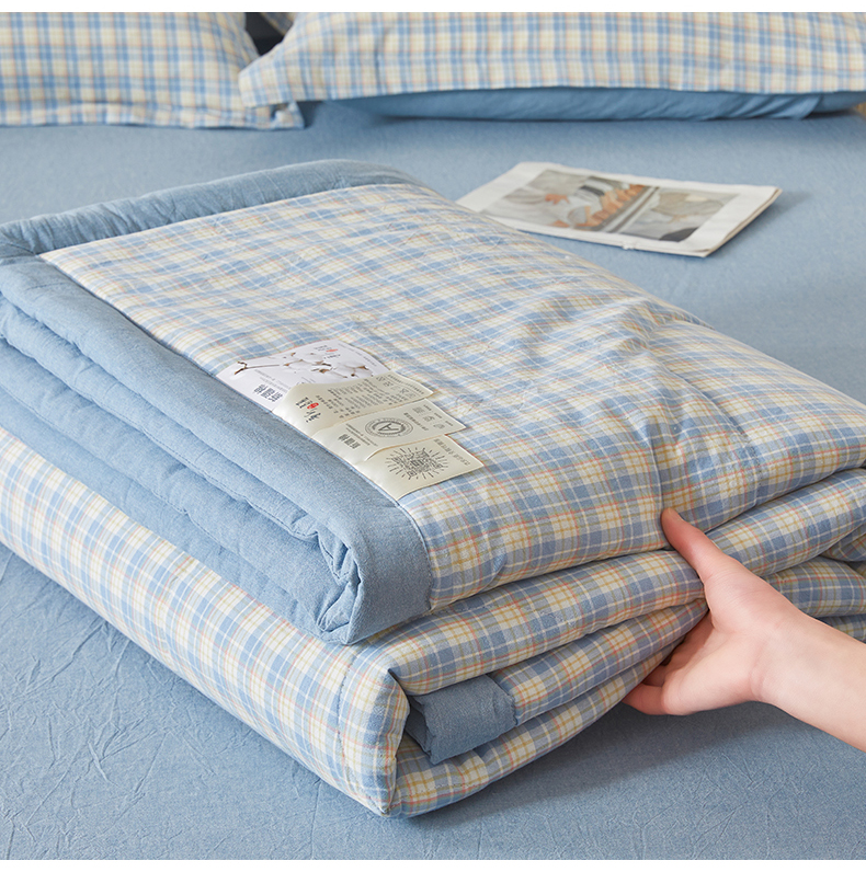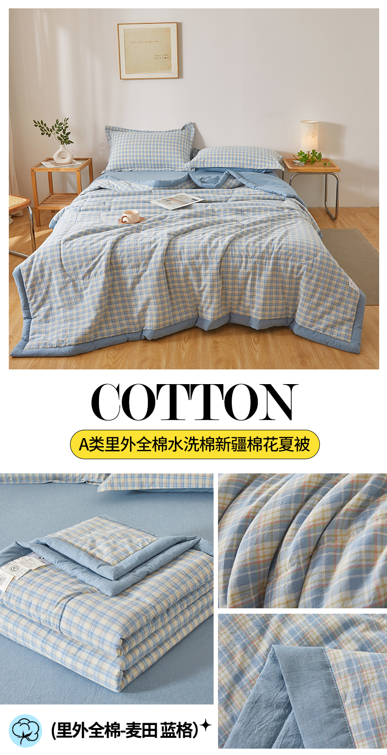 • 91家纺网 家纺一手货源 找家纺 西域种棉人·千百笠 2026新款A类里外全棉夏凉被100%新疆棉纯棉全棉填充无印格子款空调被夏被 里外全棉-麦田 蓝格