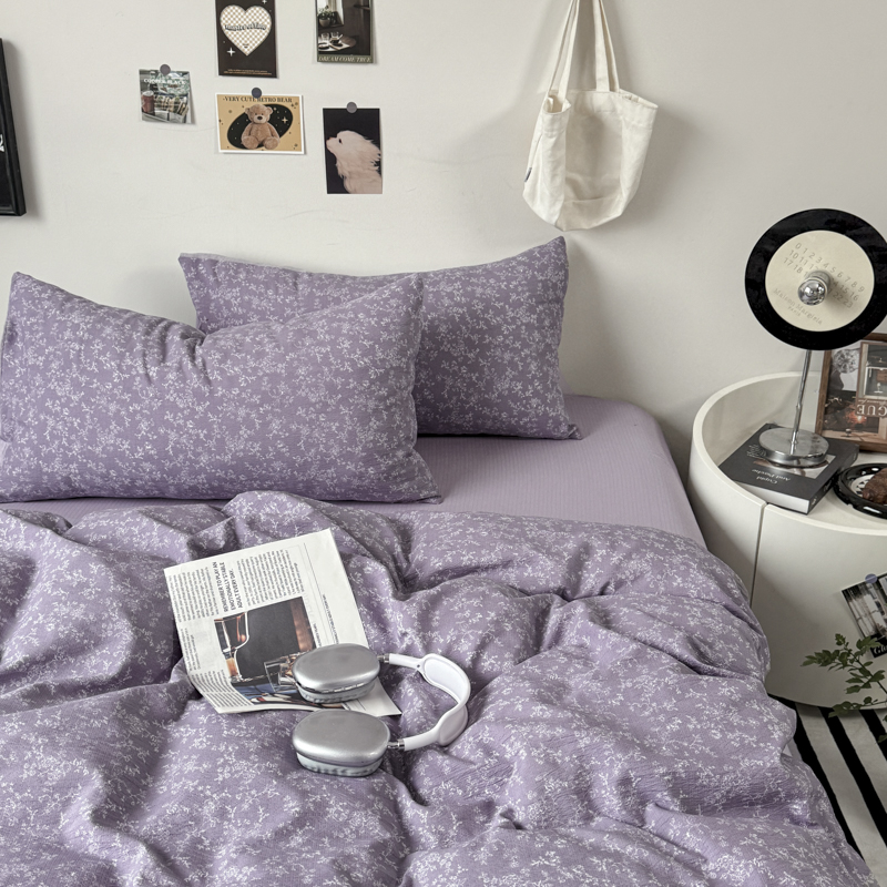 (总)雅阁尔家纺 2026新款复古美拉德风泡芙棉双层纱床单床笠款水洗棉四件套学生宿舍三件套单被套,春风拂梦,马上有钱,花姿,风华若诗,紫萝漫想,青花瓷,素蝶吟,知音咖,绿樱,紫苏