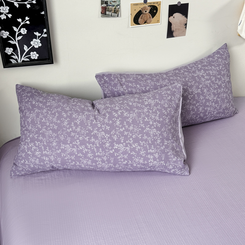 商品名称:雅阁尔家纺 2026新款轻奢复古美拉德风泡芙棉冷淡侘寂风水洗棉双层纱单枕套 紫萝漫想