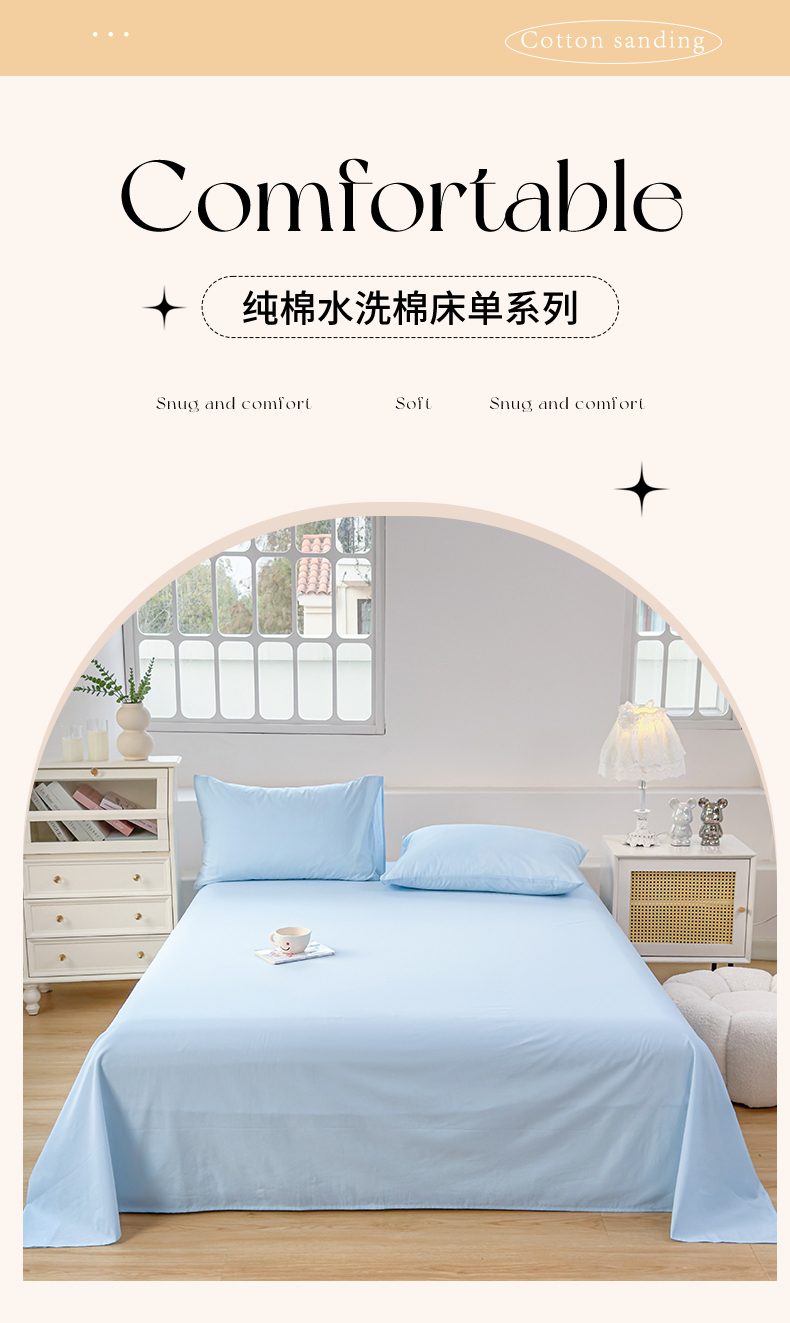 • 91家纺网 家纺一手货源 找家纺 (总)柠萌家居 2026年新款全棉A类母婴级水洗棉纯棉床单纯色系列单品,宝石蓝,薄荷绿,本白,豆沙,繁星蓝,粉紫,枫叶红,高级灰,卡其,马丁桔,摩卡,奶黄,浅粉,浅灰,浅蓝,浅紫,星空蓝,中灰,紫罗兰,组合图仅供参考不可下单