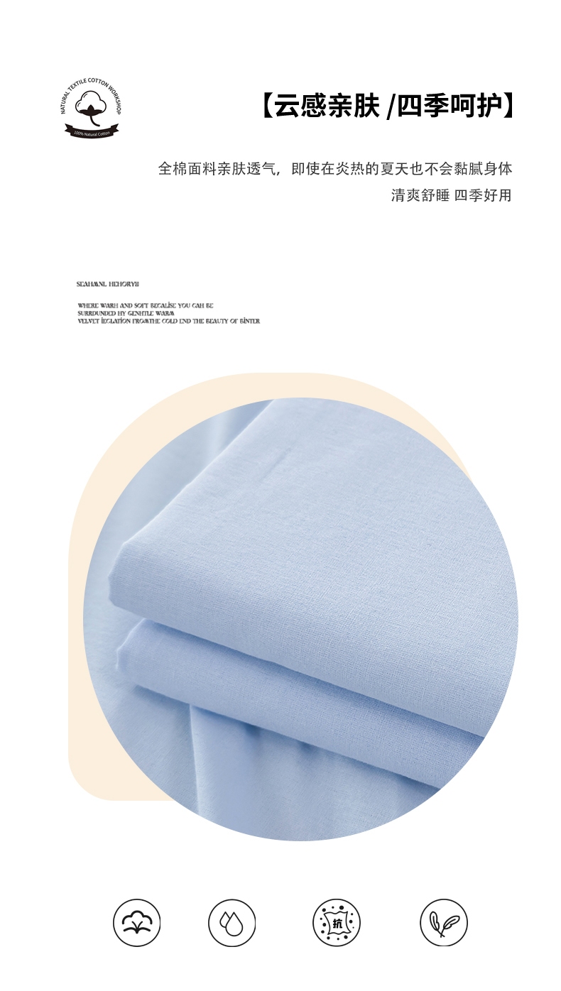 • 91家纺网 家纺一手货源 找家纺 柠萌家居 2026年新款全棉A类母婴级水洗棉纯棉床单纯色系列单品 星空蓝